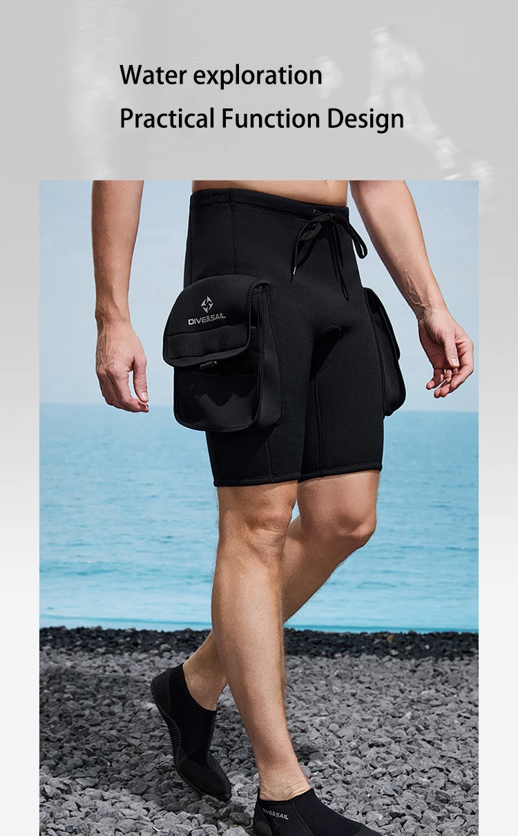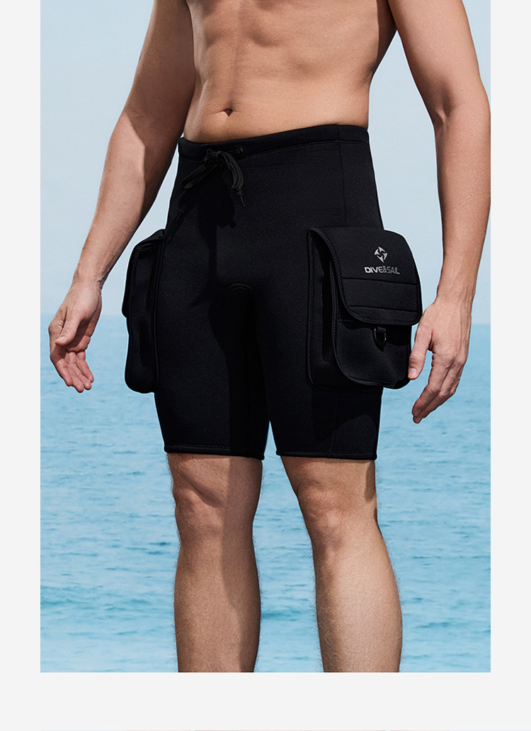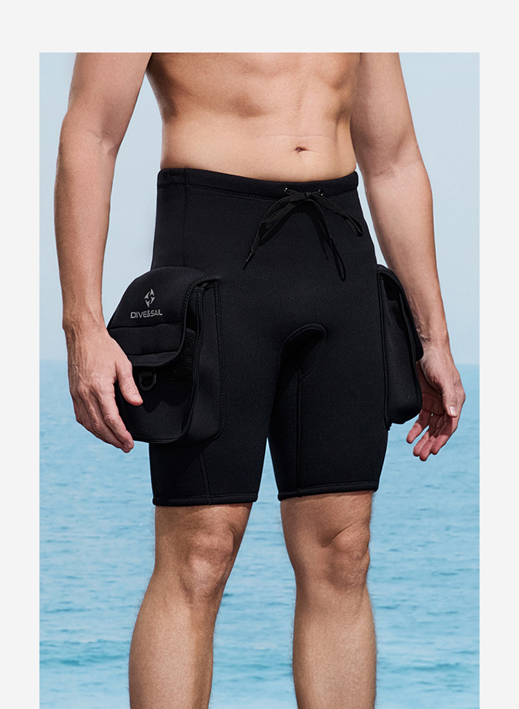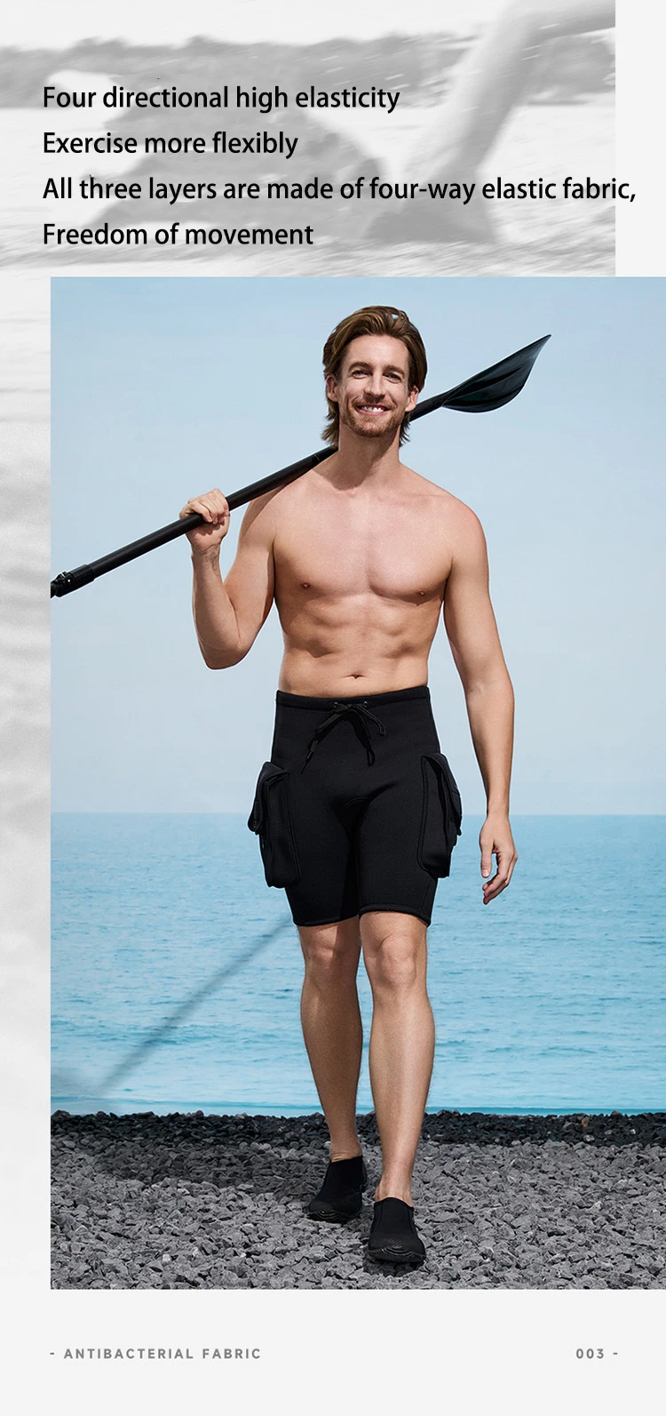 3mm Neoprene Wetsuit Tech Shorts Keep Warm Unisex Wetsuit Cargo Shorts D-Ring Buckle Leak Hole for Diving Equipment Accessories