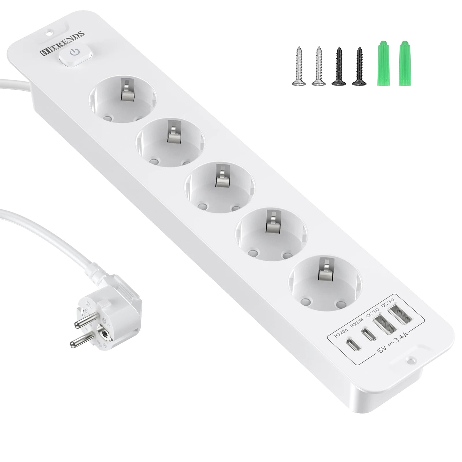 1.Built-in socket with USB: built-in socket with 4/5 Schuko sockets (16A/100-250V; max. 4000W), 2 USB-A ports (5V-2.4A) and 2 USB-C ports (5V-3A), supports simultaneous charging of multiple devices such as mobile phones, tablets and computers, with a compact design that is suitable for a variety of scenarios.