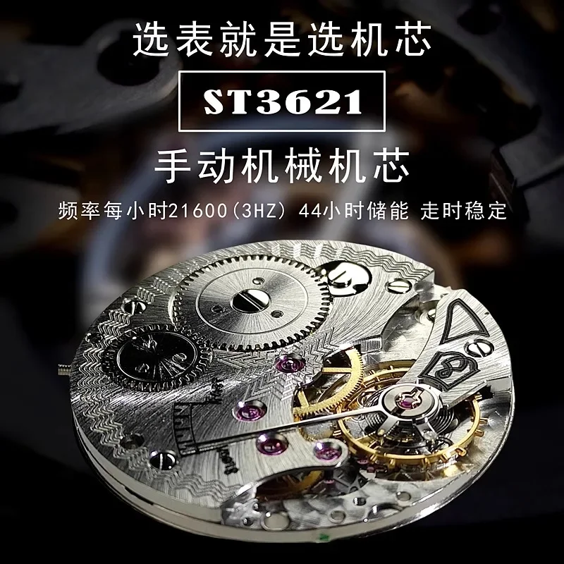 Movement: Seagull Movement ST3601 Manual, Frequency 21600, No Second - stopping Function, Power Reserve 40 Hours