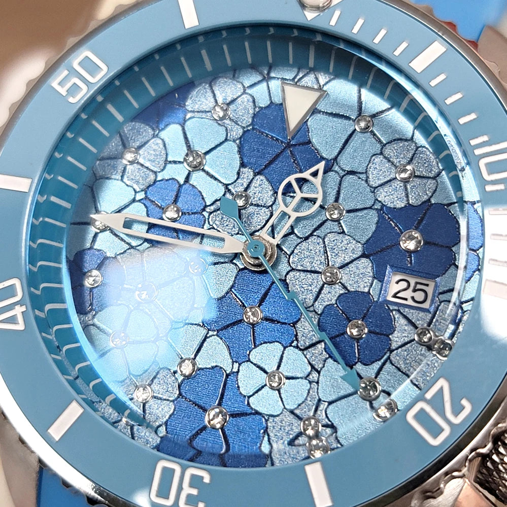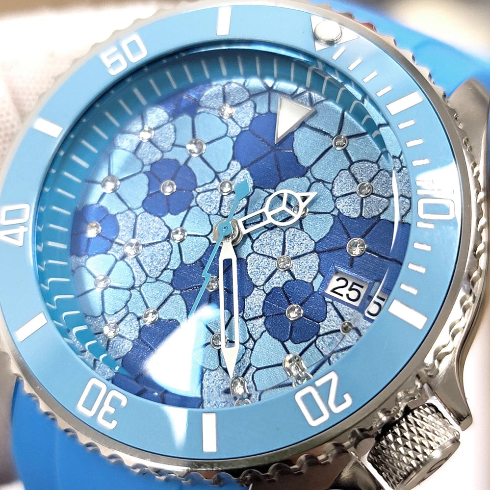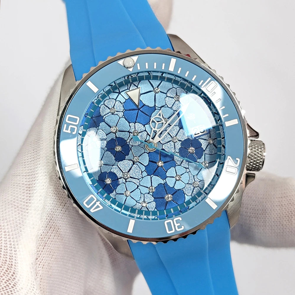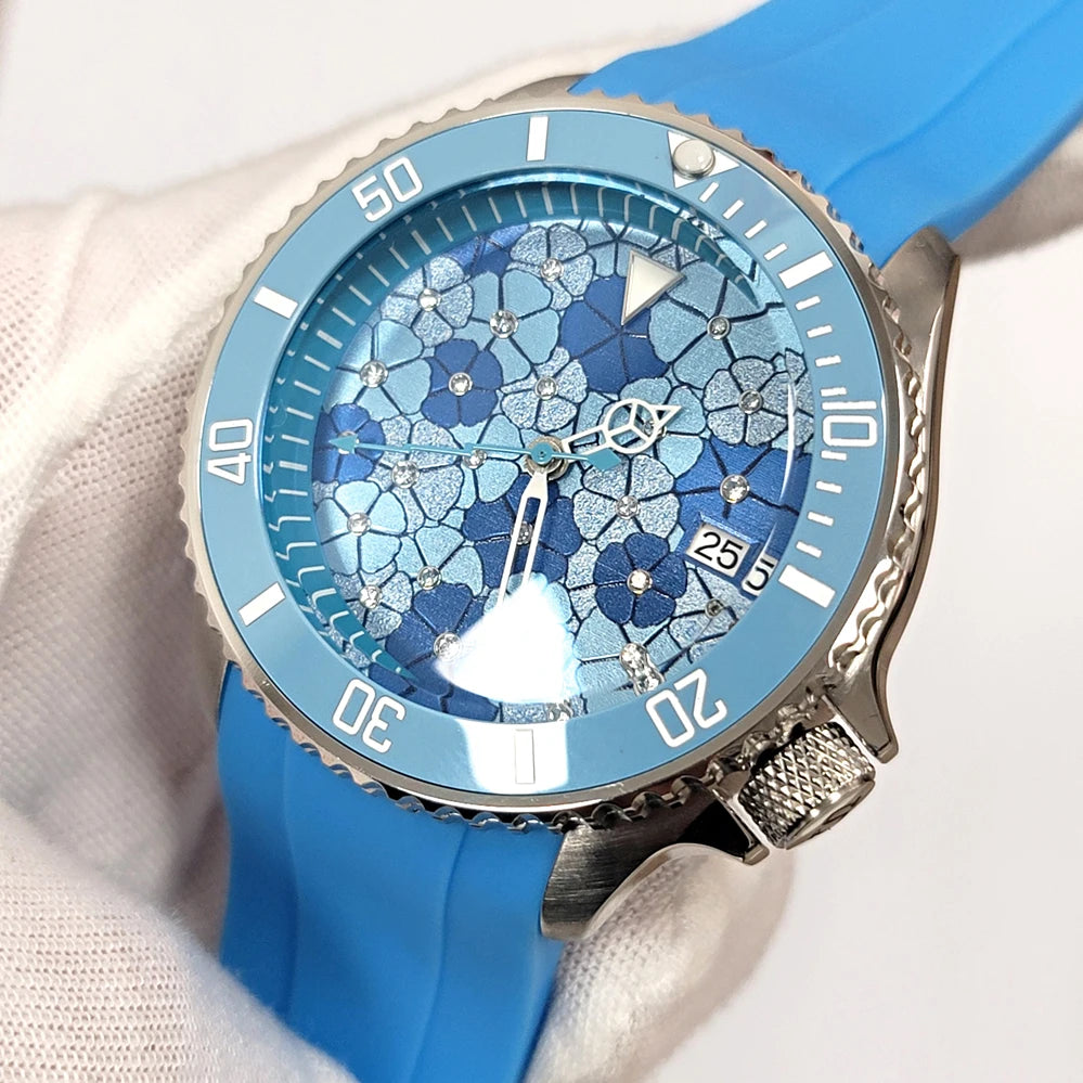 Đồng Hồ Cơ 41.5mm Mặt Xanh Vân, Máy Nhật NH35