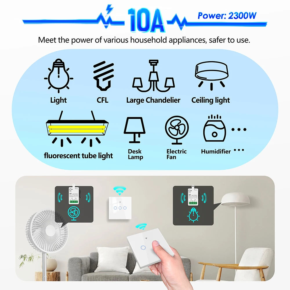 Wireless Wall Switch Range: Up to 50-150m(theoretical distance)