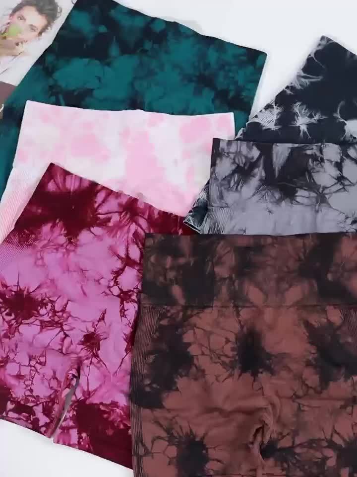4pcs Dfyne Impact Women's High-Waisted Yoga Shorts - Seamless Tummy Control, Butt-Lifting Tie-Dye Design with Elastic Waistband, 4 Colors (Black/Red Camo, Navy/White, Purple/Teal, Red Floral) - Breathable Stretchy Workout Sho