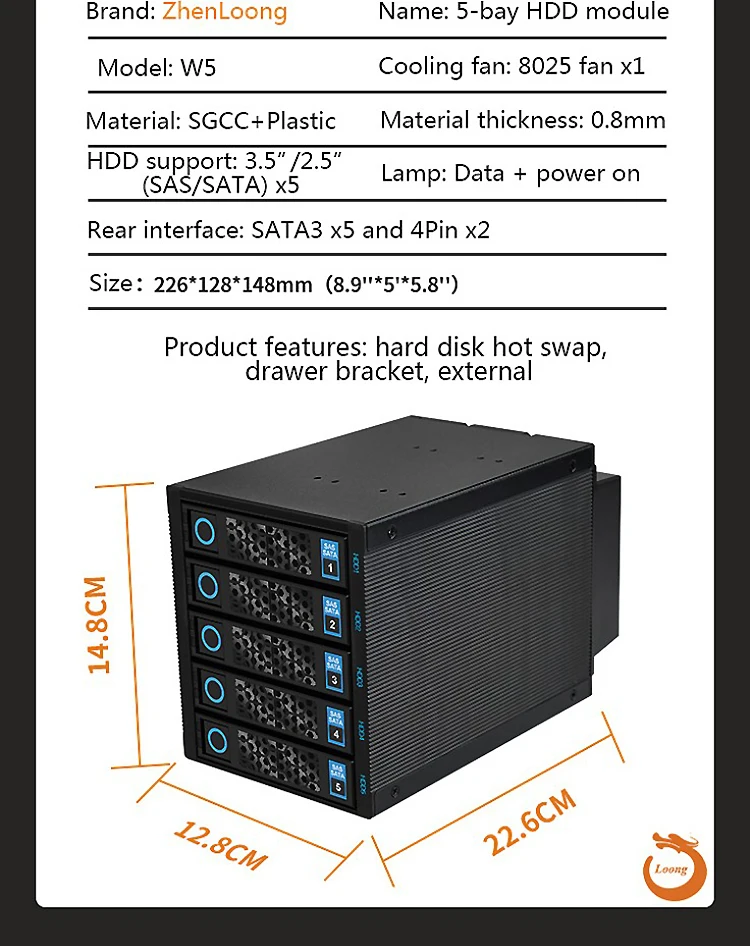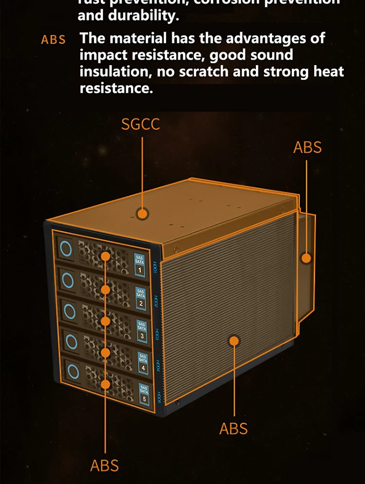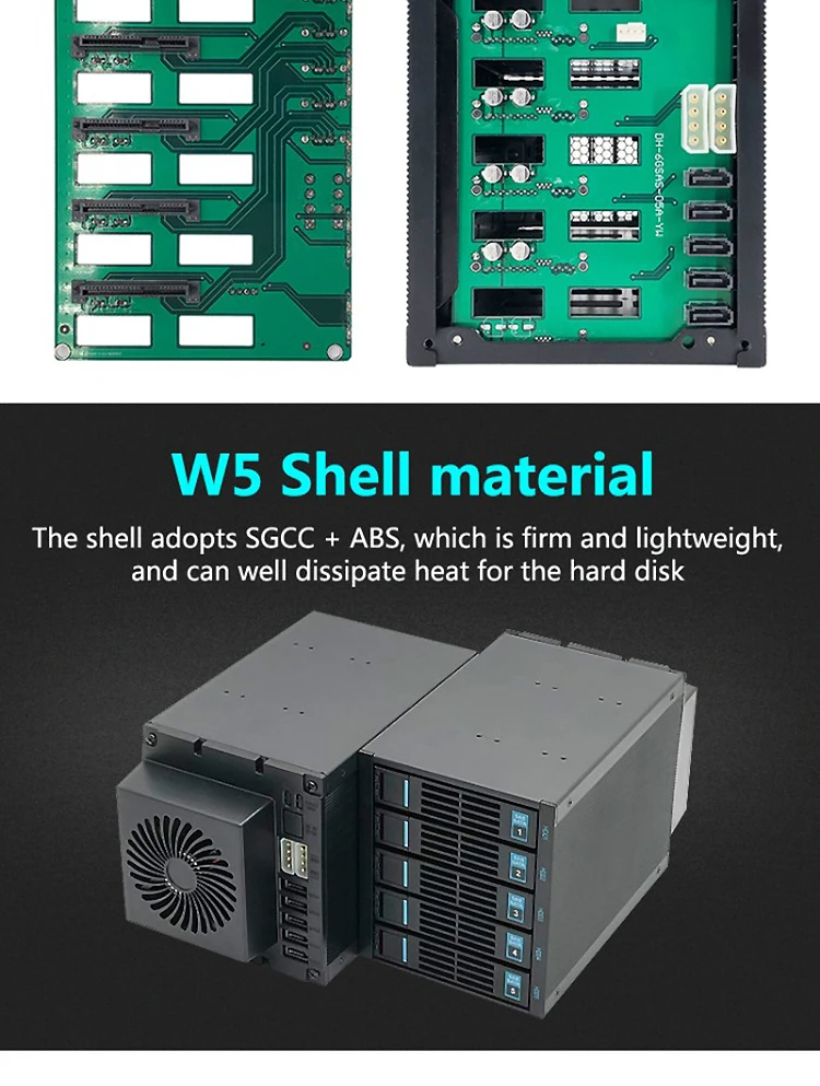 5-Bay Hot Swap Hard Disk Cage Module 3.5-inch SATA SSD HDD Rack Cabinet Data Storage For Three 5.25-inch Optical Drive Position