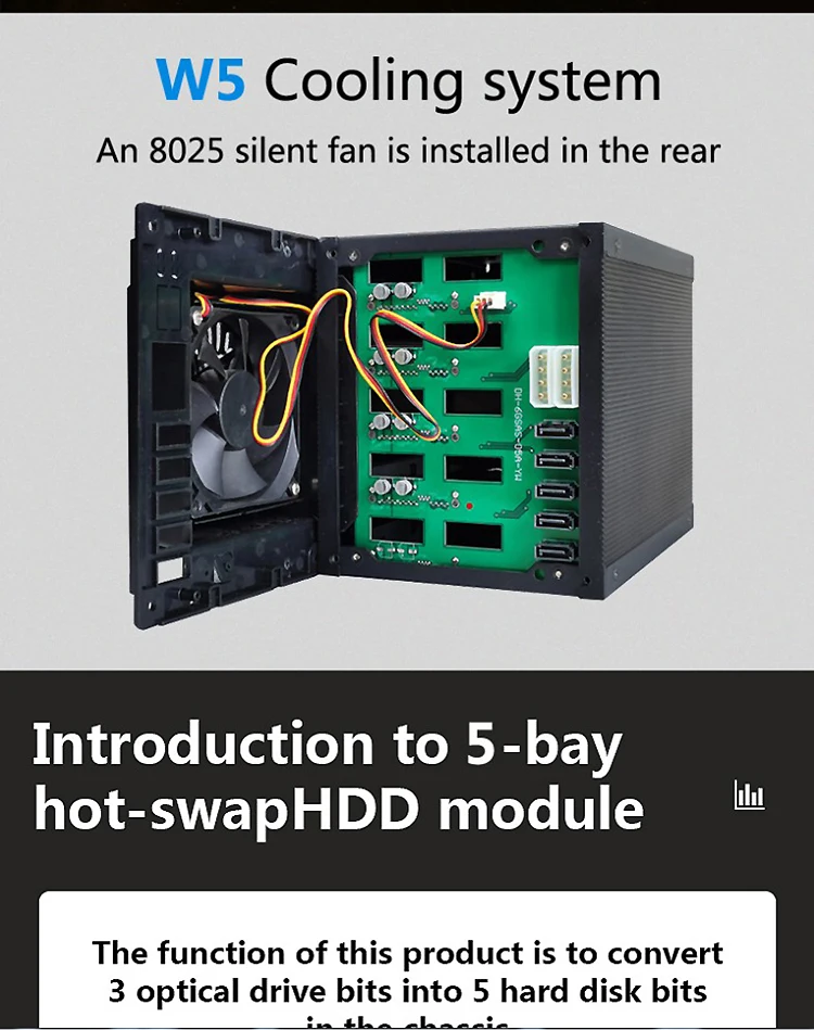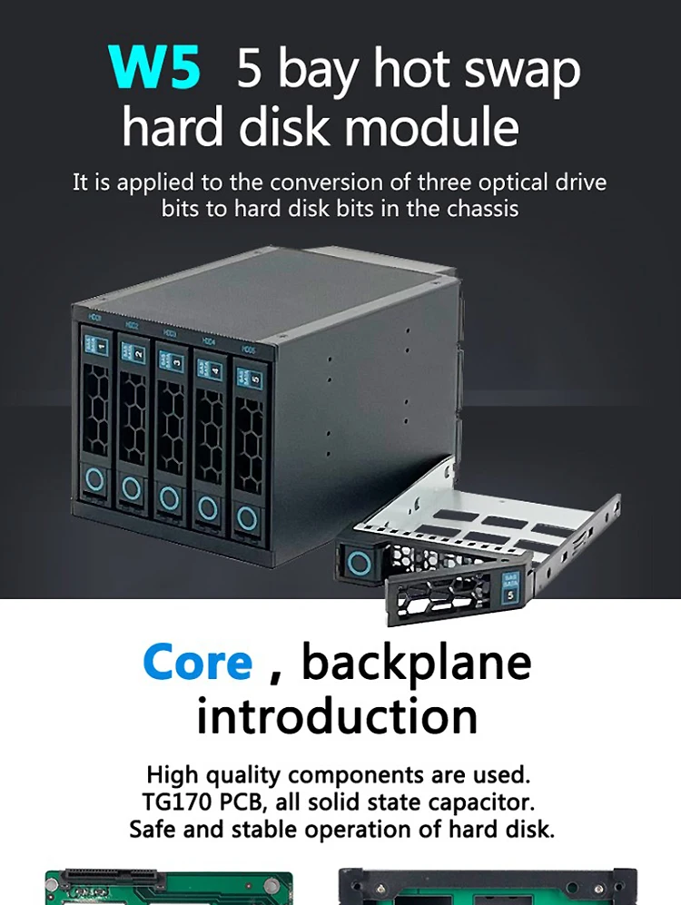 5 Bay hot plug module is installed in the chassis. The chassis needs to have three standard optical drive positions. The convex blank in the optical drive position needs to be flattened with a tool!!