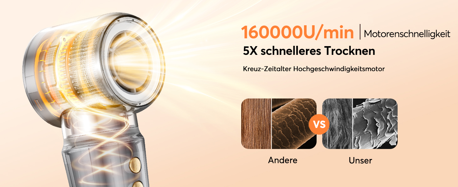 Quick blow dry without damaging the hair: The hair styling devices with 160,000 rpm brushless motor (5x faster than conventional hair dryer) generates 36 m/s airflow, halves the drying time and protects the hair. 5-in-1 airstyler with 4 temperatures (cool/warm/hot/circulation) + 2 speeds (low/high) for fine to thick hair.