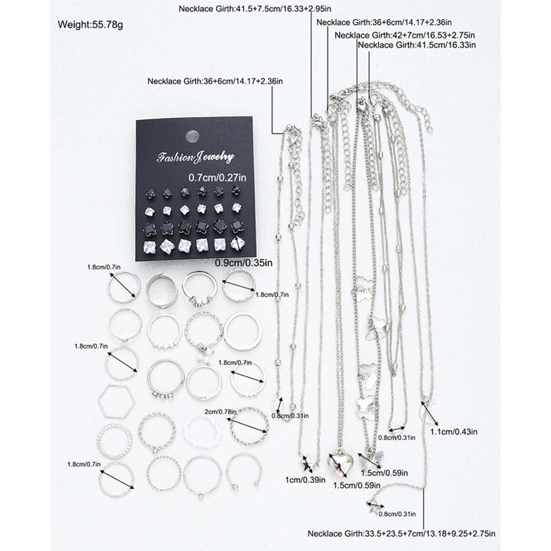 Bộ Trang Sức 51 Món Bạc - Bướm, Trái Tim & Ngọc Trai