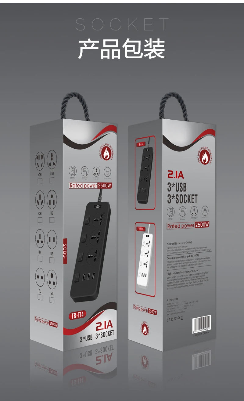 5M Extension Cable Power Plug Board Household Multi-function Power Strip Multi-plug with Usb Socket Two Feet US UK