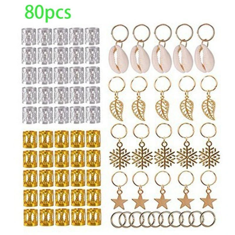 50pcs dreadlocks beads metal cuffs, 30pcs DIY hair braid ring pendants embellishments.