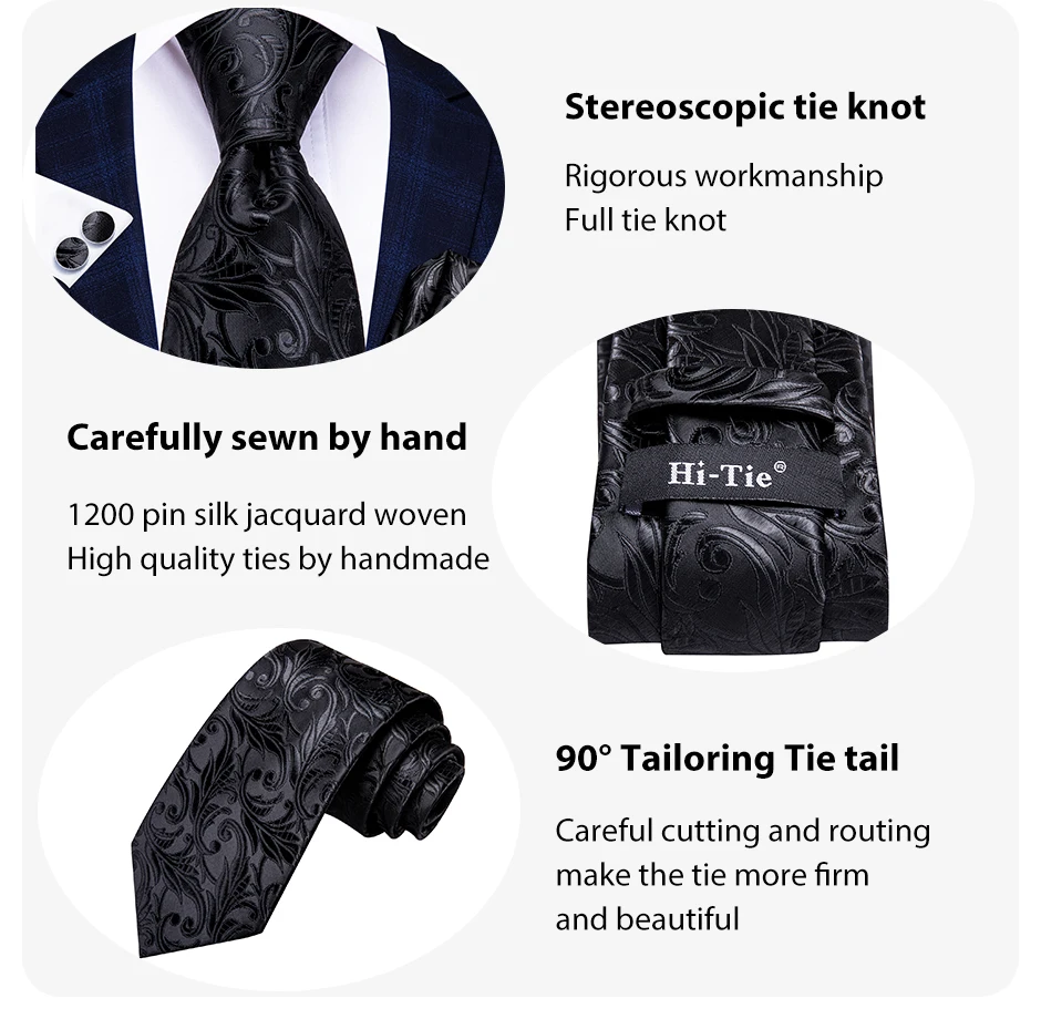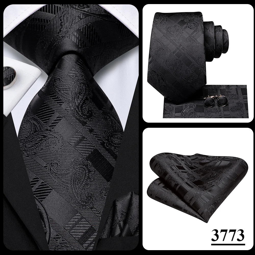 Bộ Cà Vạt Lụa Đen Hoa Paisley Sang Trọng Cho Nam