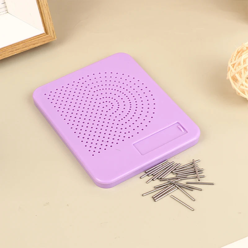 Adjust the pegs on the jig base to create patterns of your own or follow the pattern-sheet