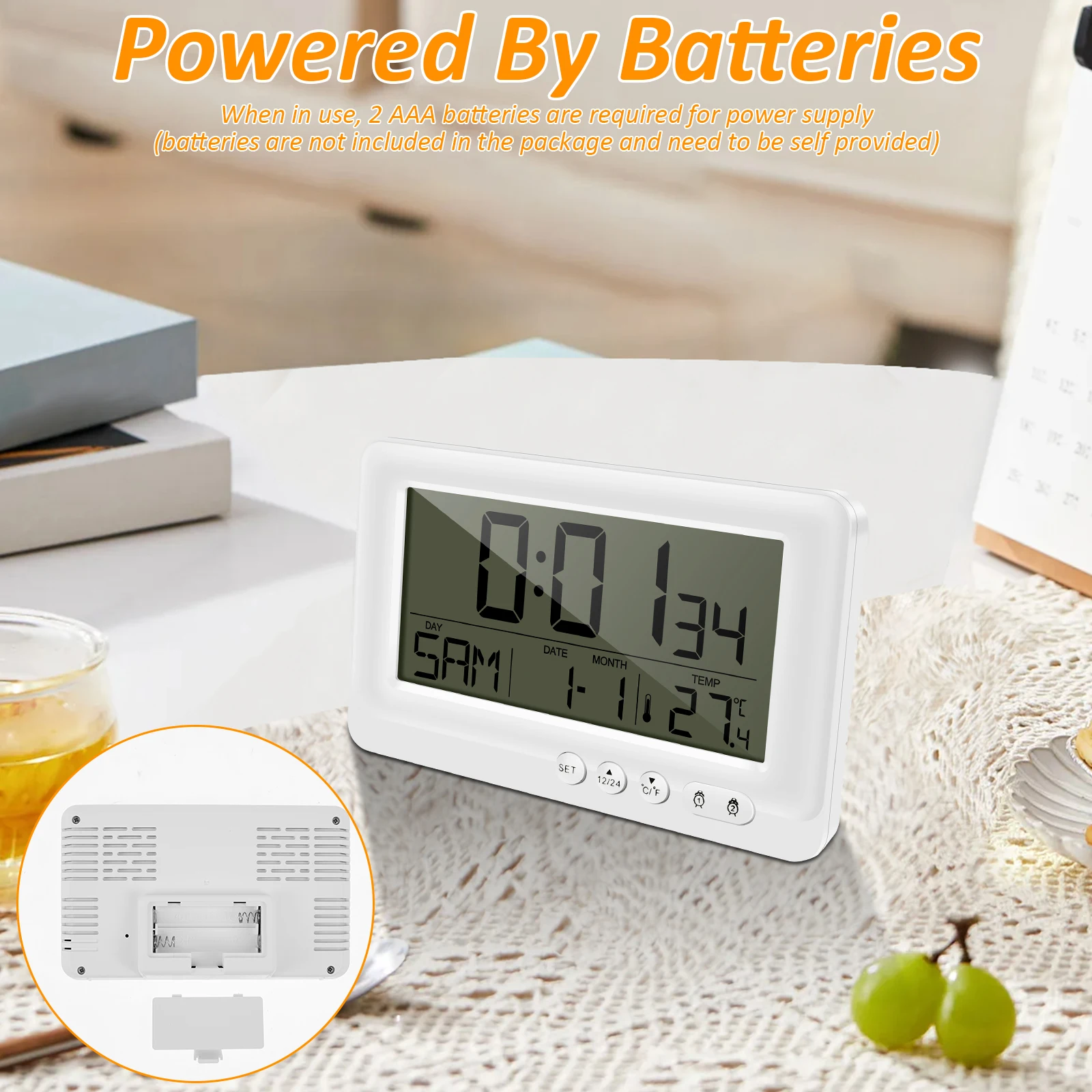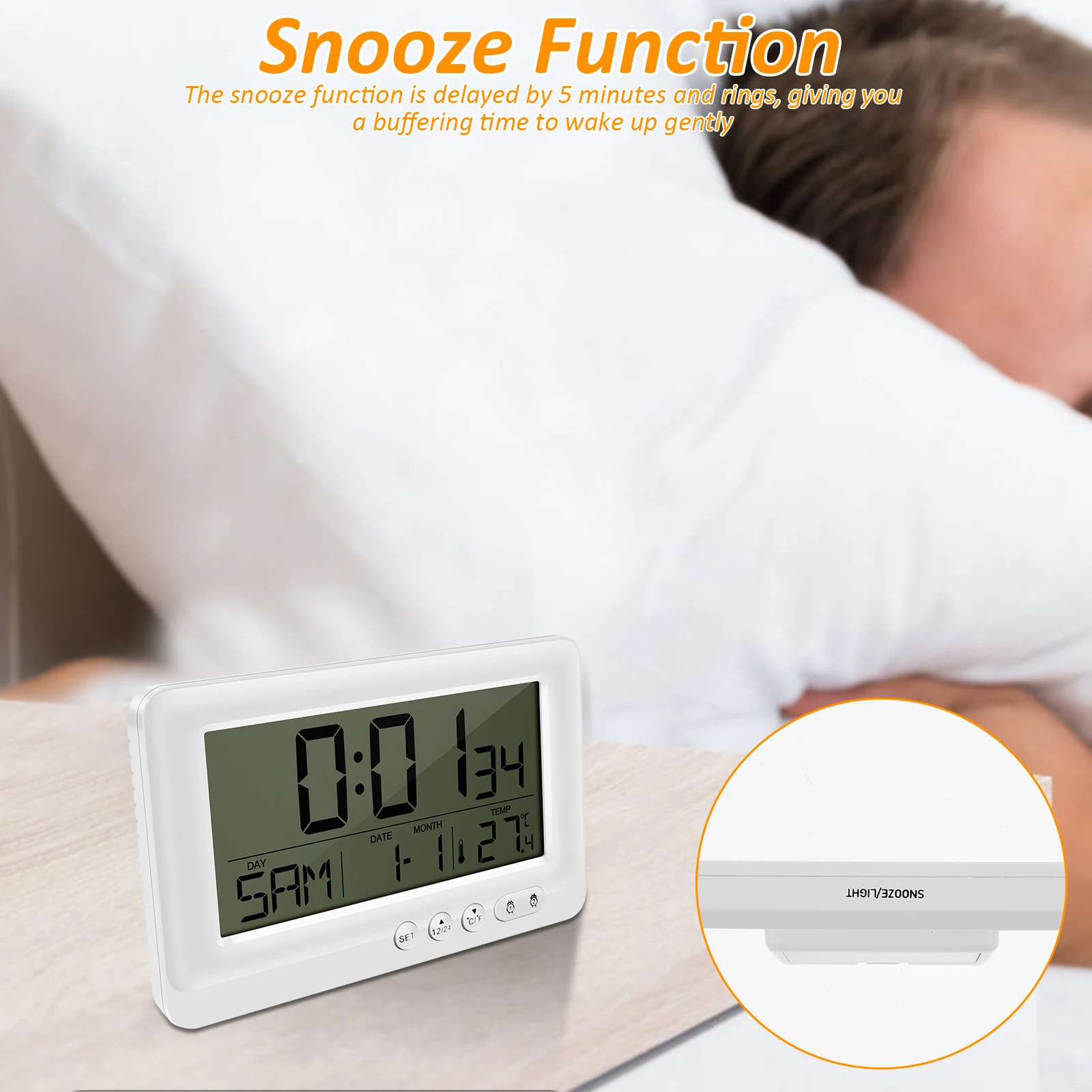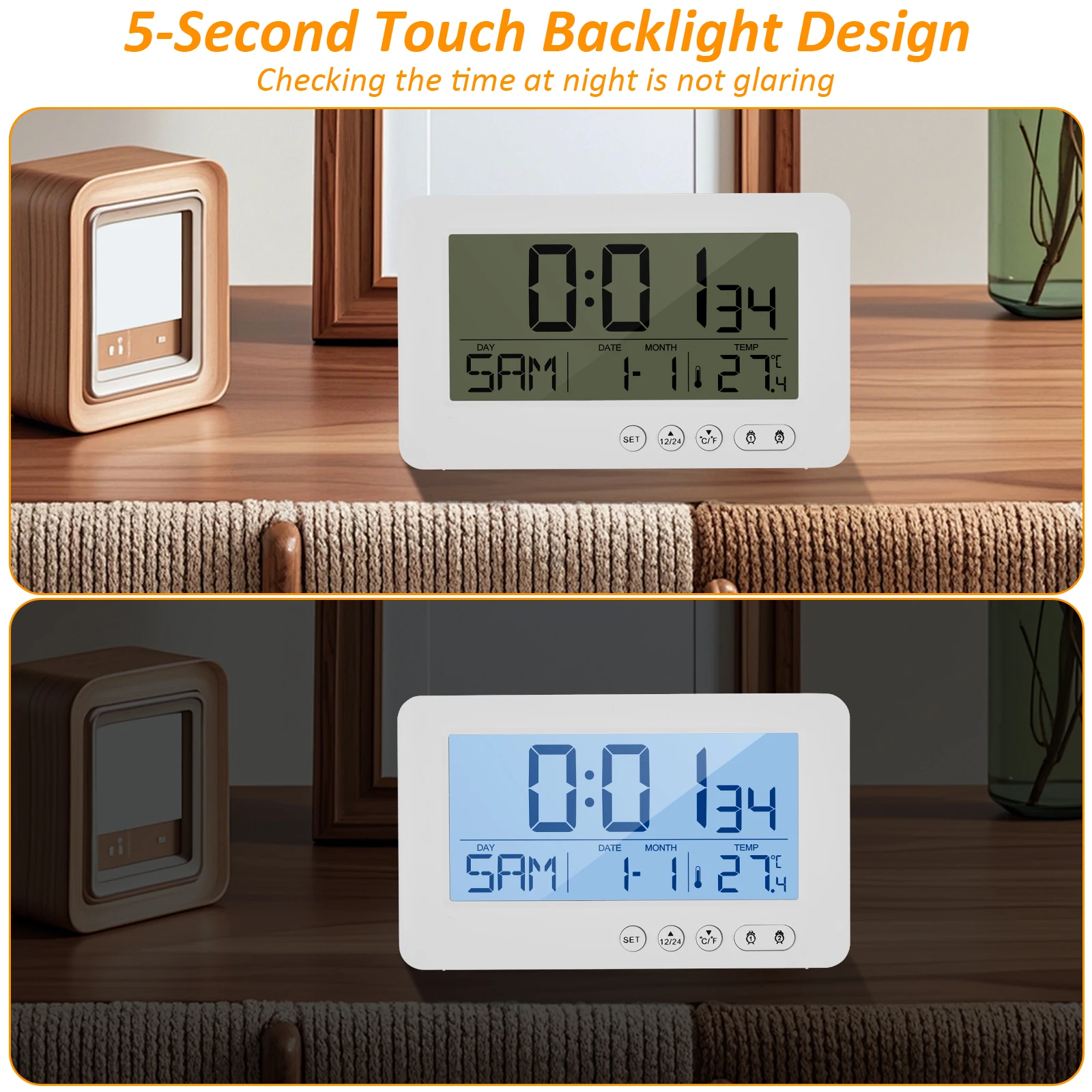 Premium Texture : This LCD digital clock is crafted from premium ABS texture and can display multiple pieces of information in real time , including the time , calendar , day of the week , and temperature , accurately showing the time and environmental conditions for easy viewing and improved daily efficiency.