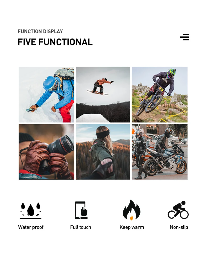 3.Full Hand Touchscreen:The gloves are designed with full hand touchscreen, which allow you to work on your cellphone or any other touchscreen devices with any part of the golves. And this touchscreen function is designed to be more sensitive and quick to rspond.