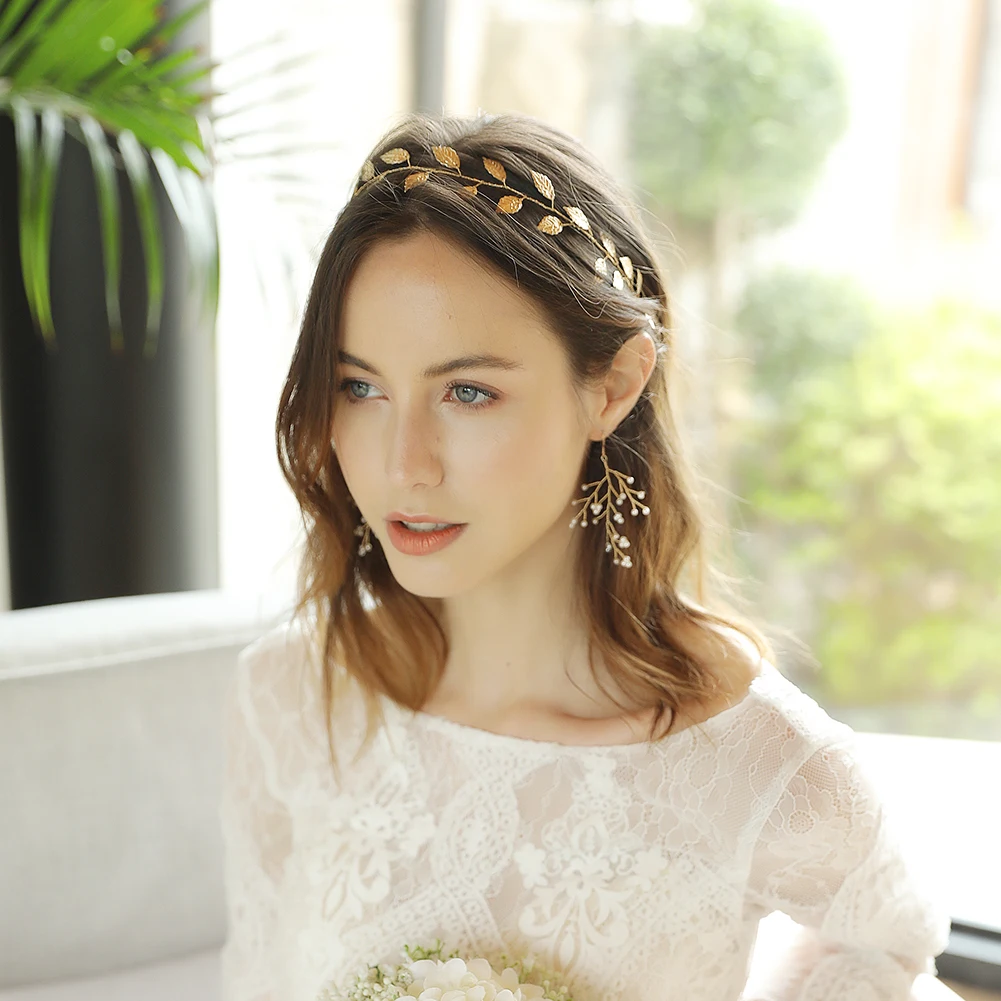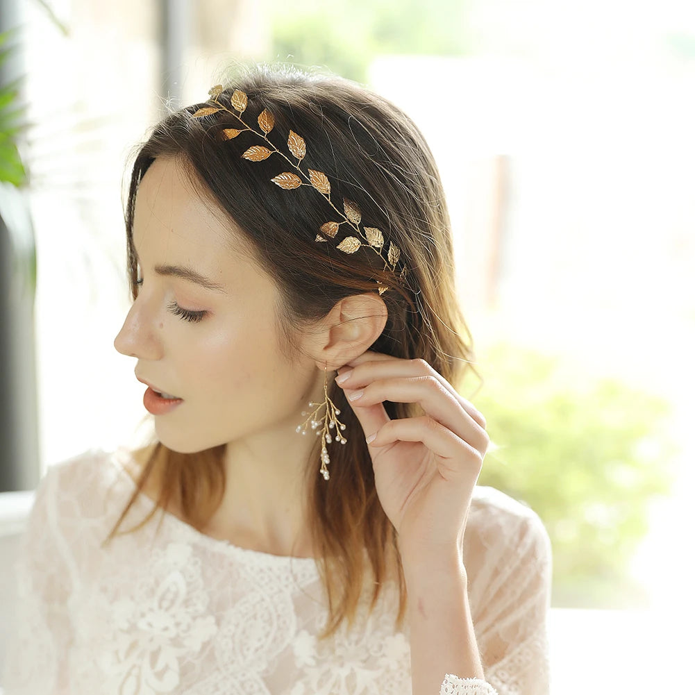 Vương Miện Cô Dâu Ngọc Trai Lá Hoa Đính Đá Sang Trọng