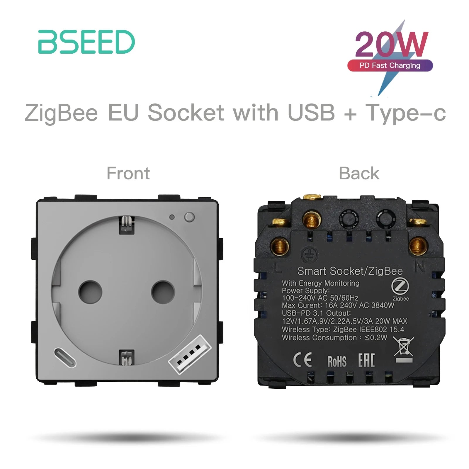 BSEED ZigBee Wall Socket Function Part Power Smart Power Monitor Meter Sockets Key Google Smart Life App Alexa Socket EU Standa