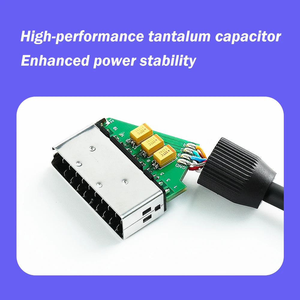 Utilizes tantalum capacitors for enhanced power stability, improving overall performance.