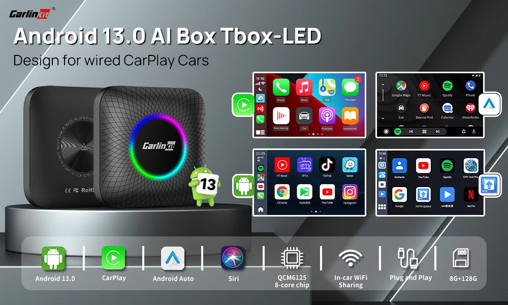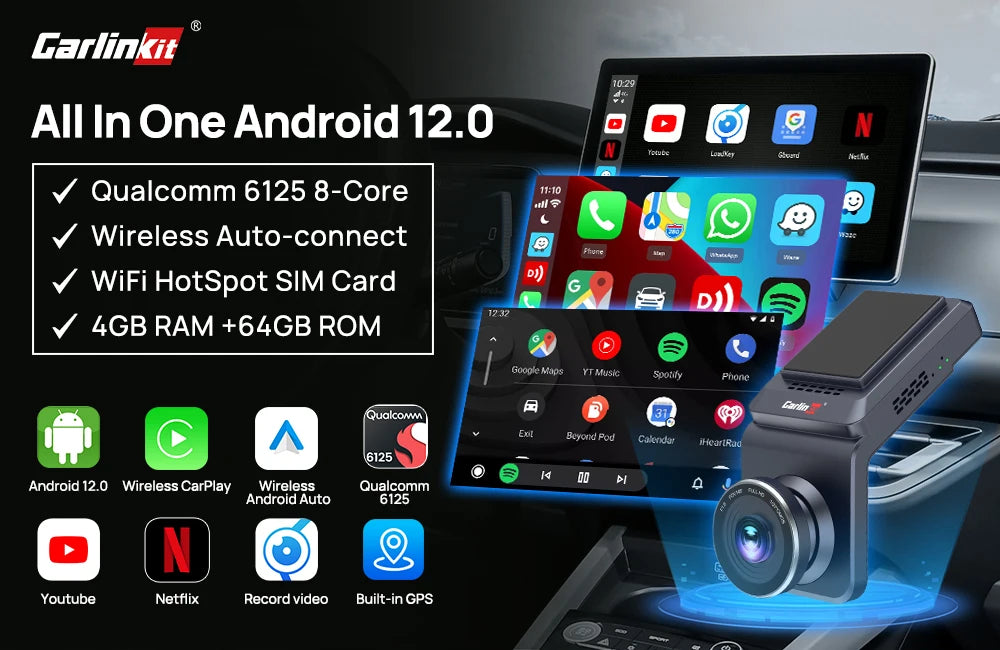 CarlinKit Wred & Wireless Android Auto & CarPlay Dongle Car USB Adapter For Aftermarket Android Car Radio Mirrorlink Split Sceen