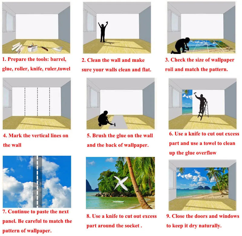 7 Material available :Waterproof canvas / Waterproof silk cloth / Straw texture / Imitation leather / 3D relief / Self-adhesive canvas / Self-adhesive PVC