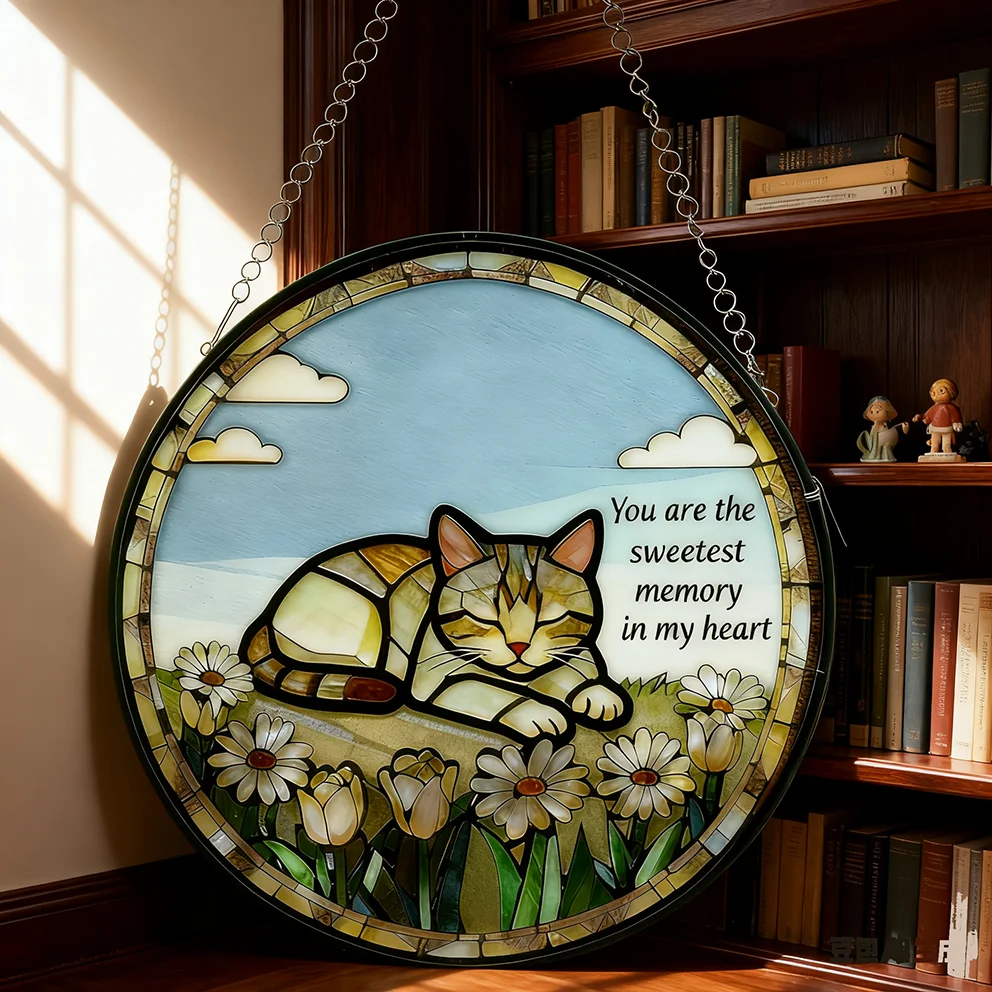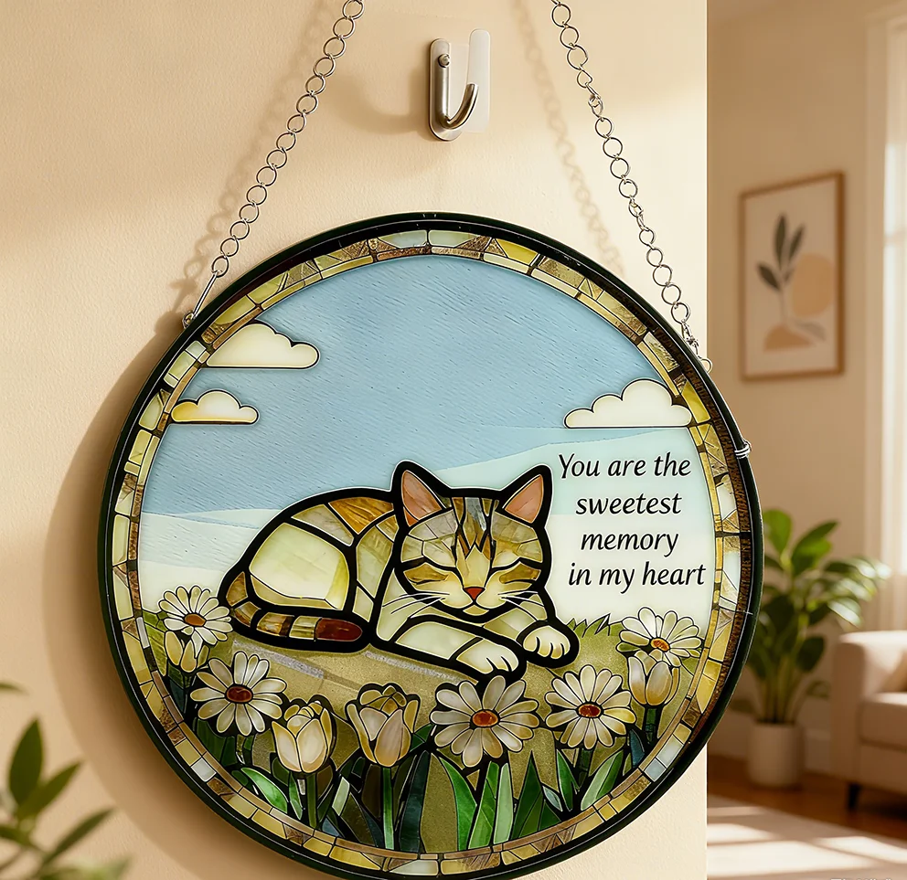 Customizable Stained Glass Cat Memorial Decor Resin Crafts Wall Hanging for Deceased or Lost Cats for Thanksgiving and Easter
