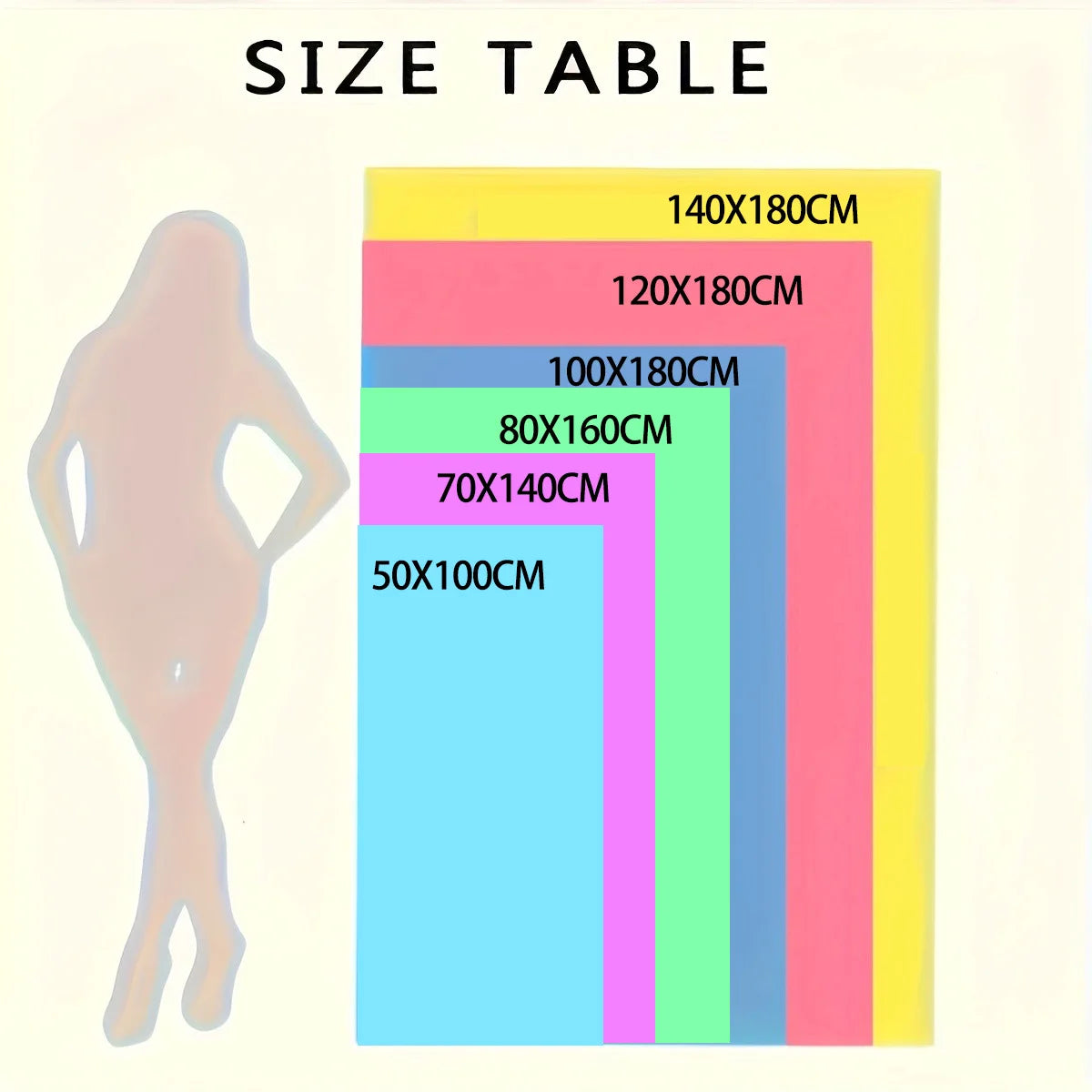 Sizes: 50×100cm, 70×140cm, 80×160cm, 100×180cm, 120×180cm, 140×180cm