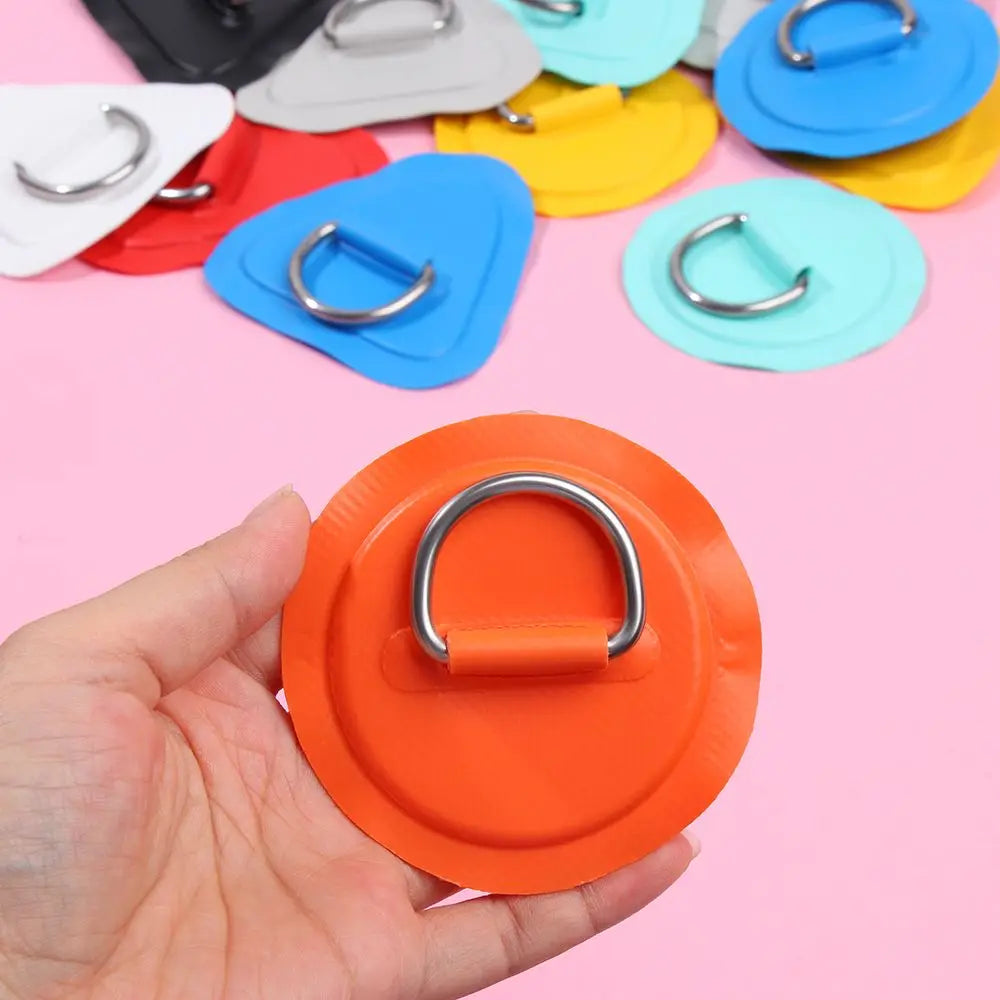 - Brand new and high quality,with Glue 2ml - 316 Stainless Steel D Ring, PVC Patch - Stainless steel 316 pull ring, and it will not rust,durable and long lasting - 9 colors for your choose - Easy to tie rope, fixed items, paddles and so on - Roughen back side and clean with solvent prior to gluing for best results - Suitable for PVC Inflatable Boat, Raft, Dinghy, Kayak, Canoe, SUP, Surfboard -Size:9 CM Package Included: 1 PC Triangle D Ring Pad/Patch