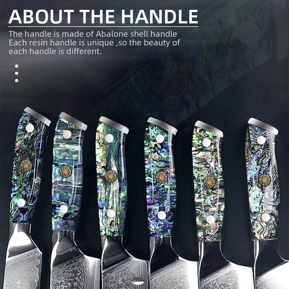 Damascus Steel knives Set Chef knife VG10 67 Layers Cleaver Paring Bread Knife Lasting Sharp Abalone shell handle