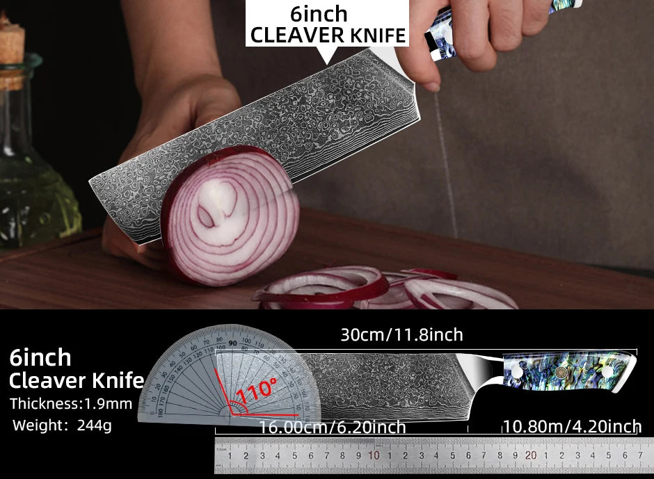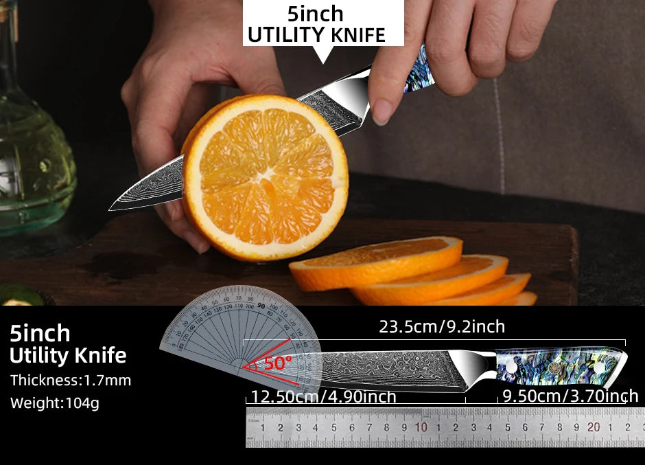 Dao Bếp Damascus VG10 67 Lớp Tay Cầm Vỏ Bào Ngư