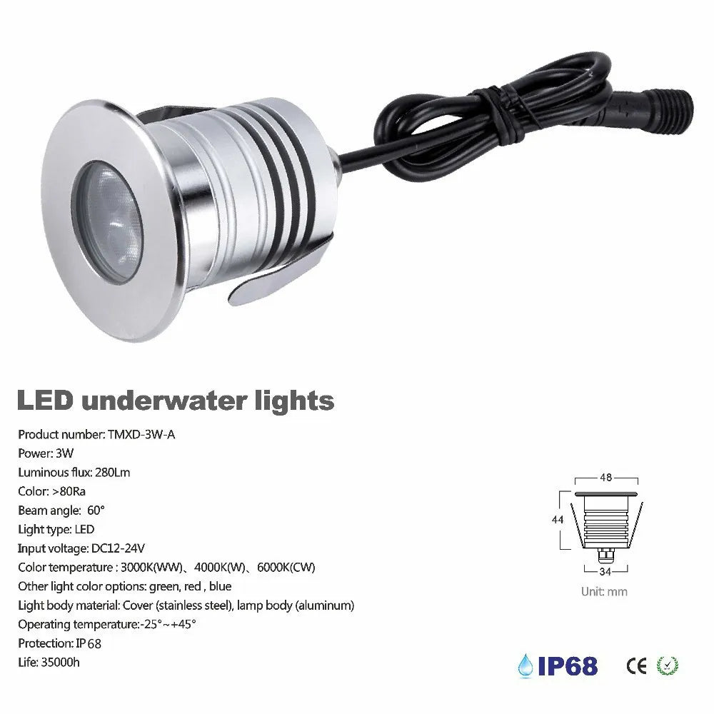 Đèn LED 3W Chống Nước IP68 Cho Hồ Bơi An Toàn 12-24V