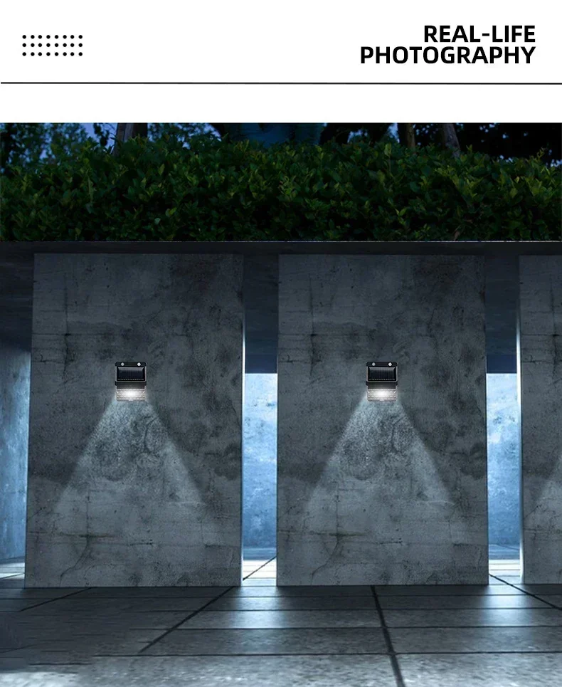 1. Wide application: IP65 outdoor solar lamp, suitable for garden, swimming pool, fence, courtyard, driveway, stairs, external wall, etc., heat resistant, weatherproof, no need to worry about outdoor damage
