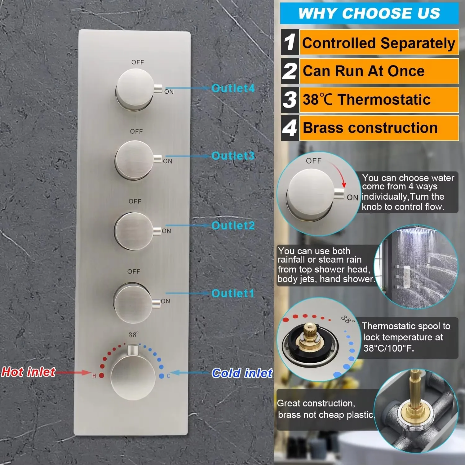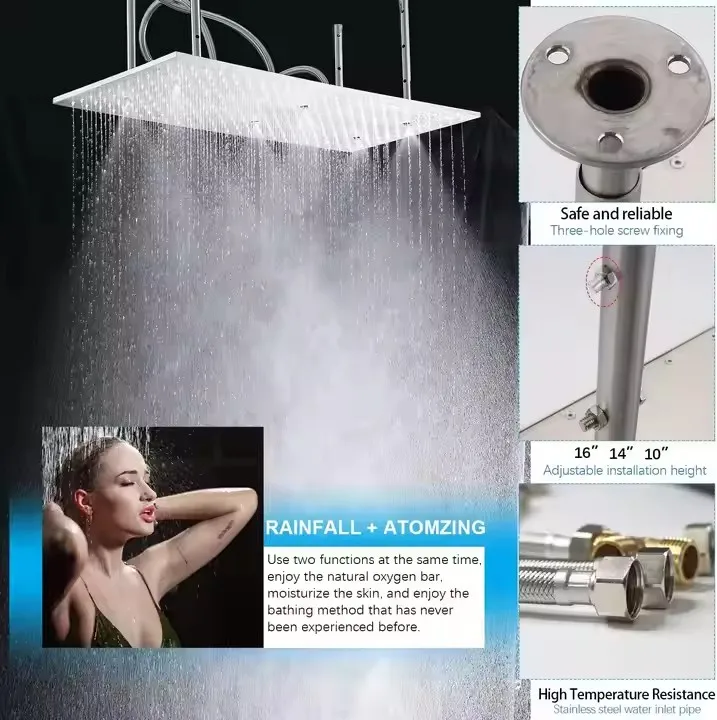 DULABRAHE Ceiling 800*400mm Shower Head with Full Body Jet Multifunction Shower System With Temperature Shower Faucet Set