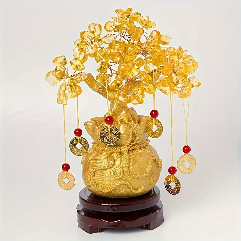 Elegant Golden Resin Wealth Tree with Natural Crystal Leaves - Attracts Prosperity & Fortune, Feng Shui-Inspired Home Decor, Unique Business Gift, Auspicious Wealth Symbol, Ideal for Reptile Habitat Tree, Feng Shui Home Decor