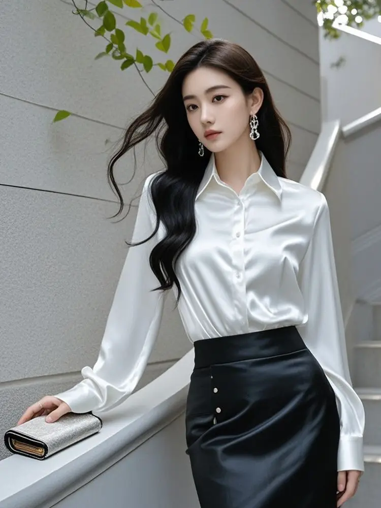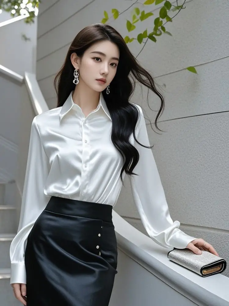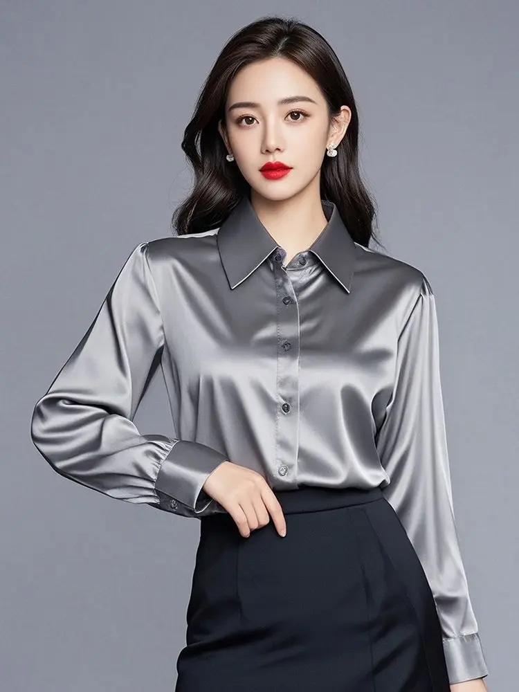 Áo Sơ Mi Lụa Công Sở Nữ Hàn Quốc Dài Tay Thanh Lịch