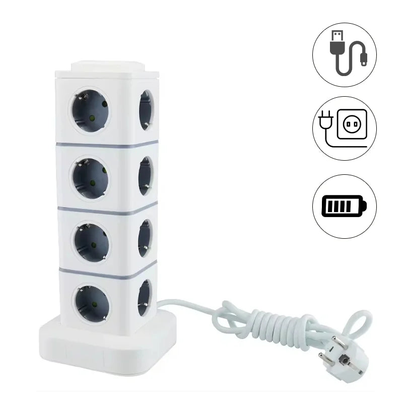 Ổ Cắm Tháp Đa Năng EU Có USB & Bảo Vệ Chống Sét