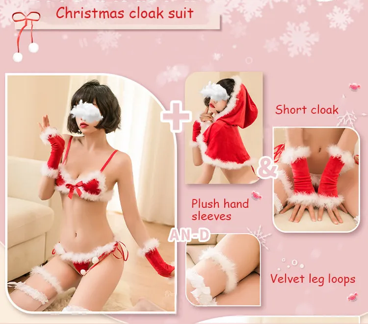 Exclusive Design Four Piece Sexy Christmas Underwear Cloak Christmas Sexy Lingerie Women