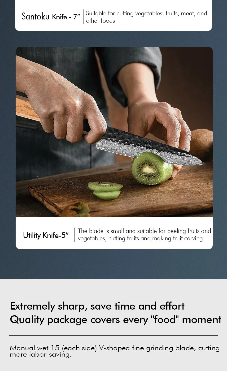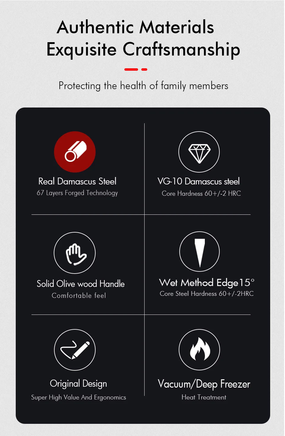 F.YOUNG Damascus Steel Kitchen Knives Japanese Hand Forged Chef Knife Vegetable Slicing Sashimi Utility Kitchen Cooking Tools with Olivewood Octagonal Handle