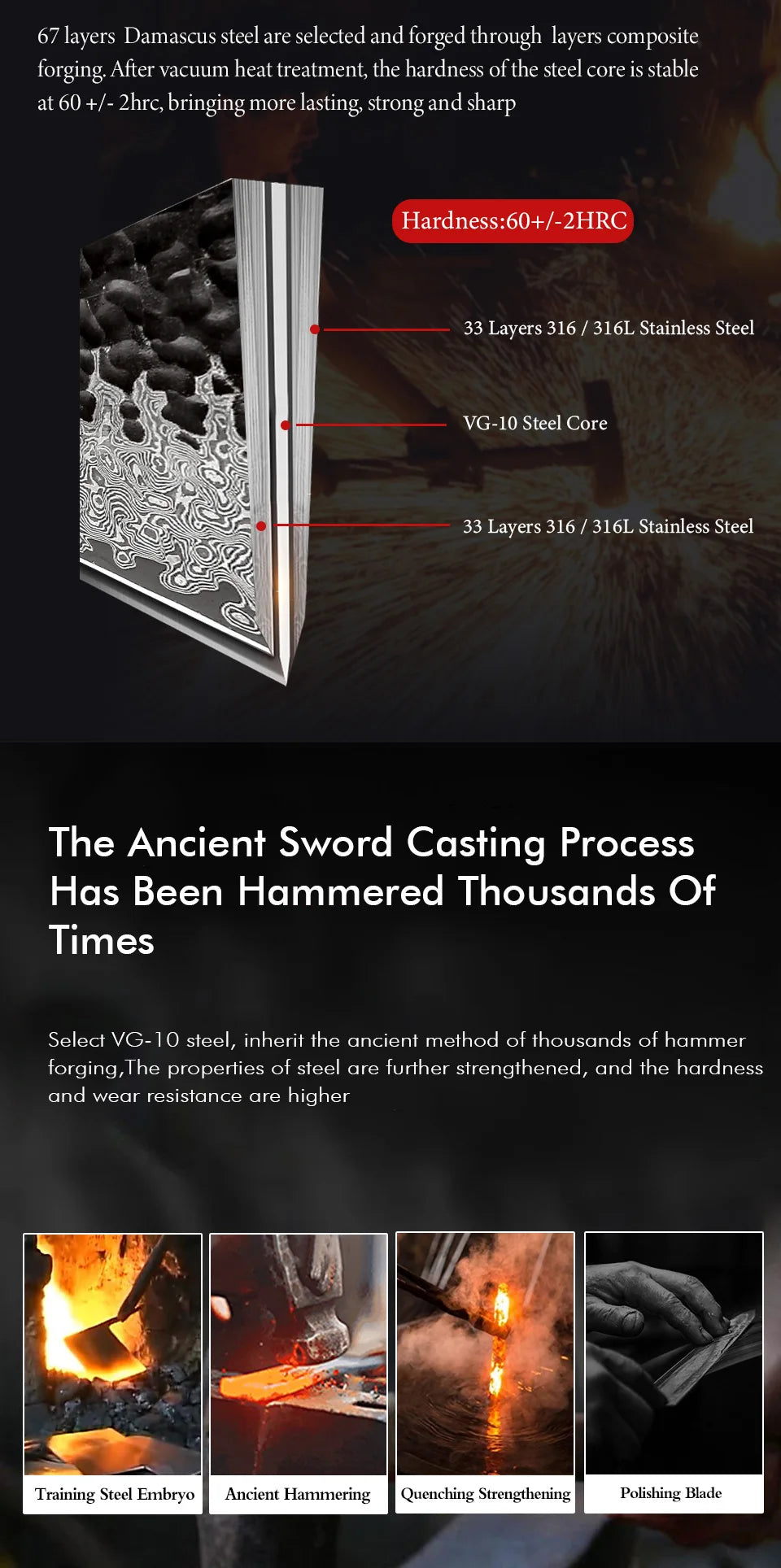 Blade Material: Carbon Steel,67 Layers Damascus Steel
