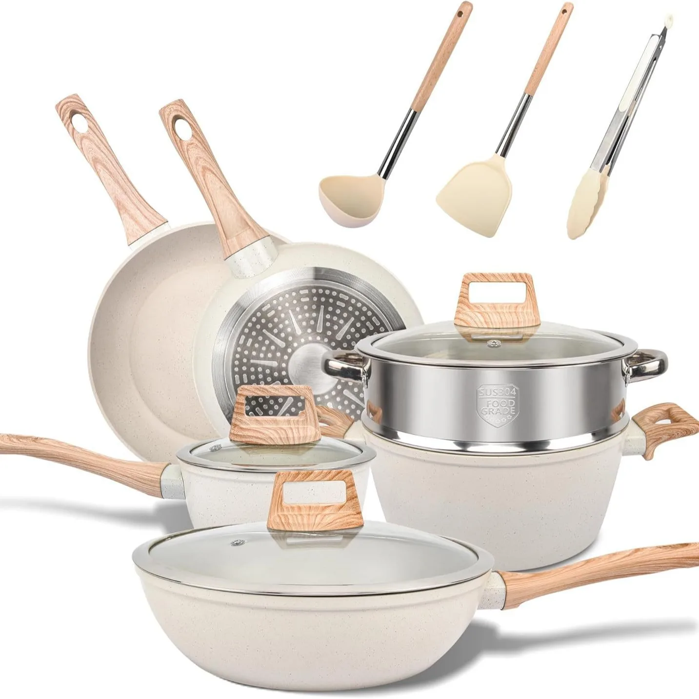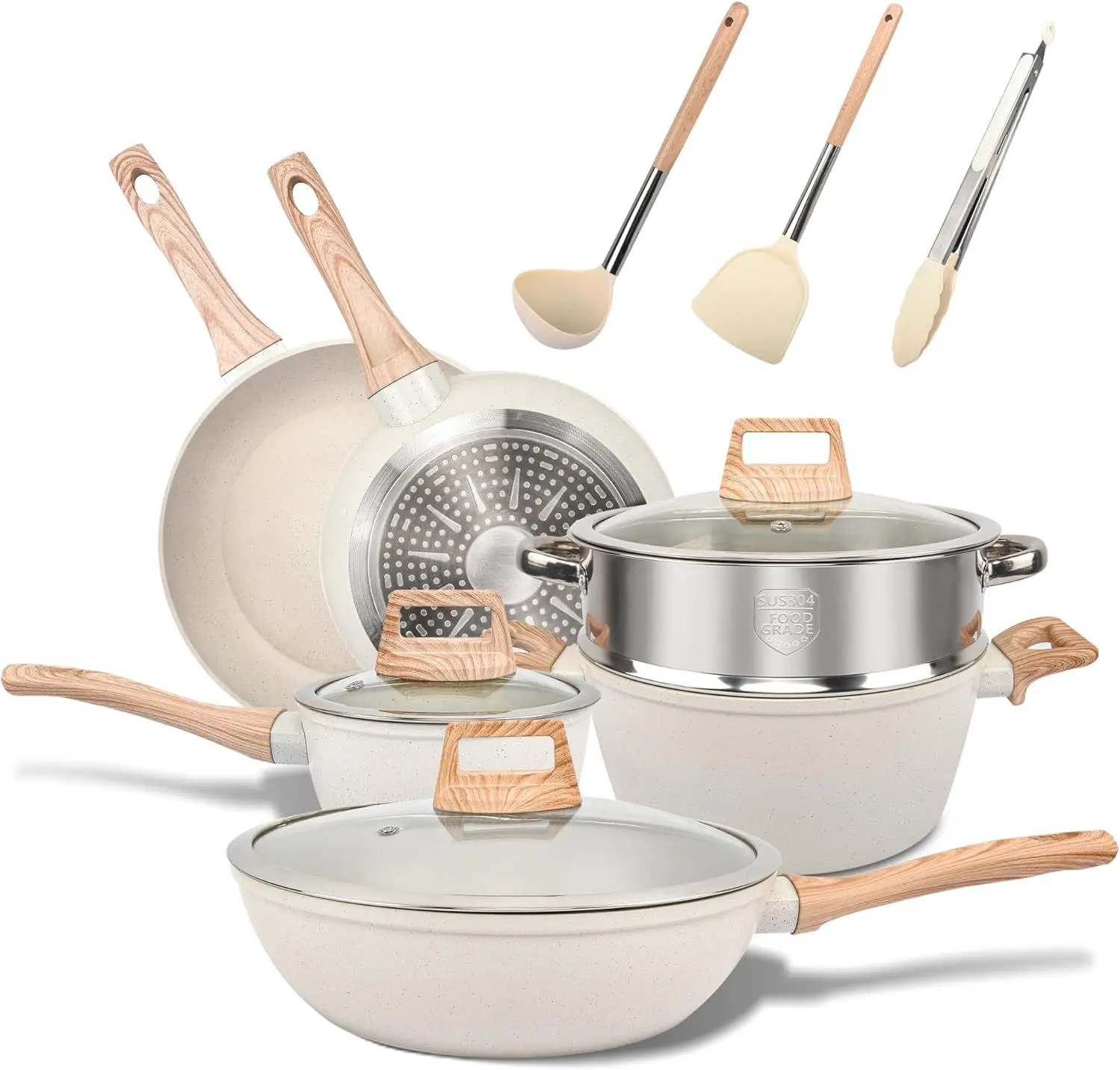 Bộ Nồi Chảo Ceramic 21 Món Chống Dính Tay Cầm Bakelite
