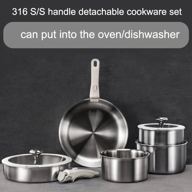 Bộ Nồi Inox 316 Kèm Xửng, Tay Cầm Tháo Rời