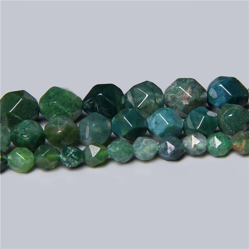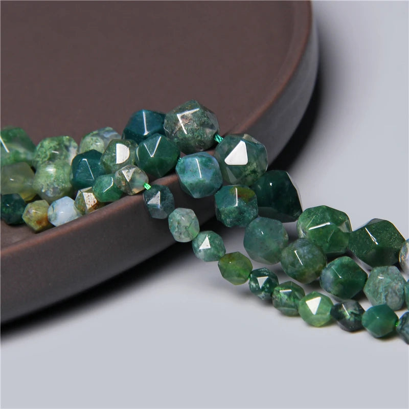 Vòng Đá Rêu Xanh Mài Giác Tự Nhiên - Trang Sức DIY