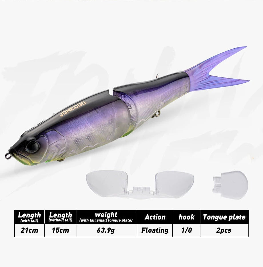 Mồi câu cá bơi lội 21cm, nặng 64g là lựa chọn tuyệt vời cho các cần thủ săn cá săn mồi như cá pike, cá bass. Thiết kế hình dáng minnow sống động, màu sắc bắt mắt giúp thu hút cá hiệu quả. Mồi nổi trên mặt nước, di chuyển linh hoạt, kích thích cá tấn công mạnh mẽ. Sản phẩm được làm từ chất liệu cao cấp, bền bỉ và chịu lực tốt. Thích hợp sử dụng cho cả người mới bắt đầu và dân câu chuyên nghiệp. Hãy trải nghiệm những chuyến câu đầy thú vị cùng sản phẩm này!
