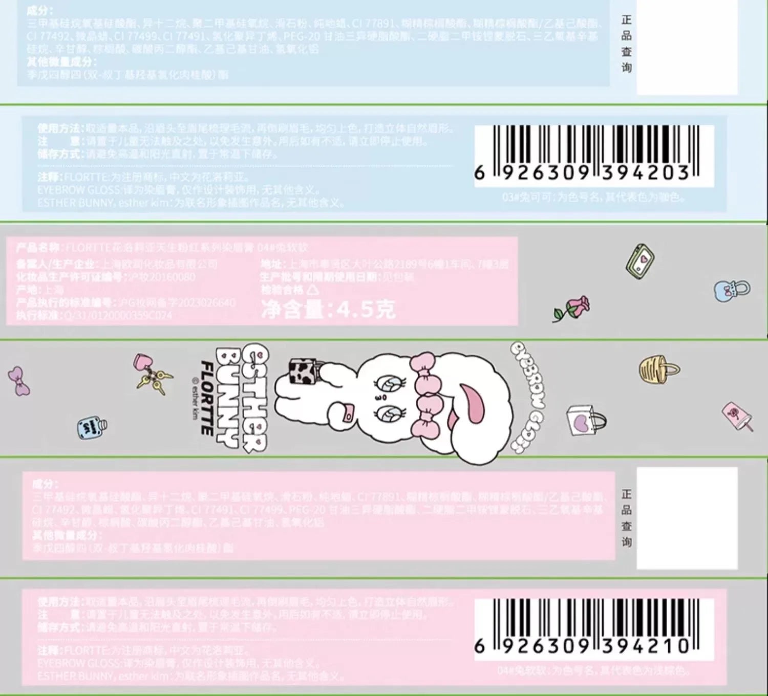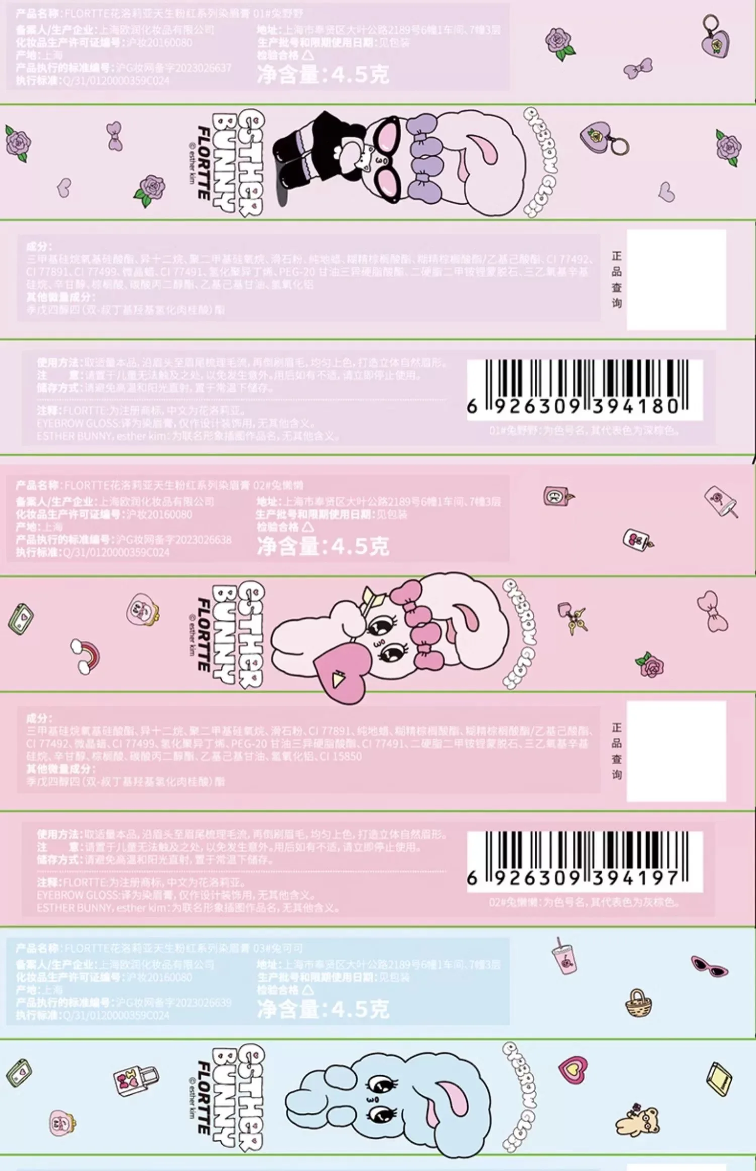 FLORTTE and BUNNY Co-Branded Eyebrow Dye Cream for Clear and Plush Wild Eyebrows