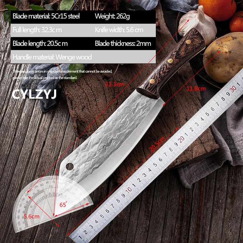 Due to the high carbon content of forged knives, please keep the knife blade away from acidic, alkaline, or corrosive substances, and make sure to clean the knife on a regular basis. Be sure to rinse it with running water, and wipe off the water stains subsequently with a cotton cloth. Cooking oil can be smeared on the blade for added effects. When no longer in use, store the knife in a dry place.