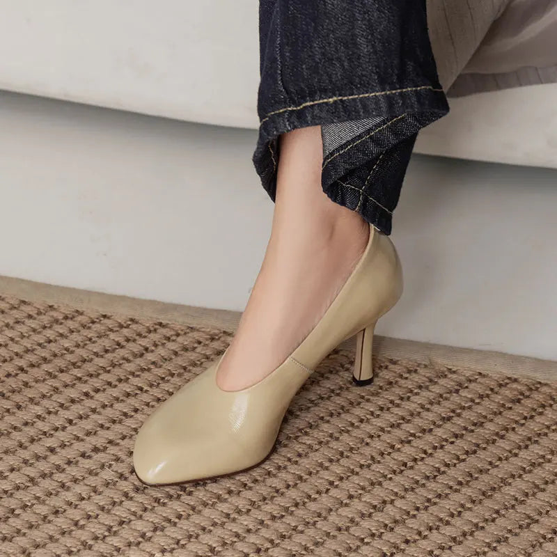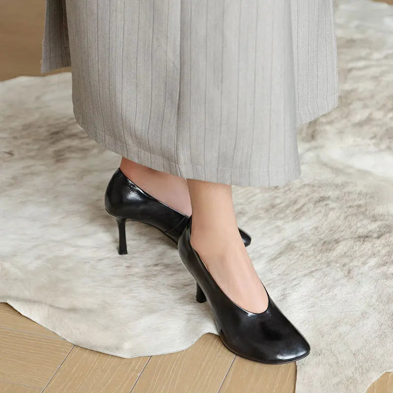 Giày Cao Gót Nữ Phong Cách Retro Pháp Da Thủ Công