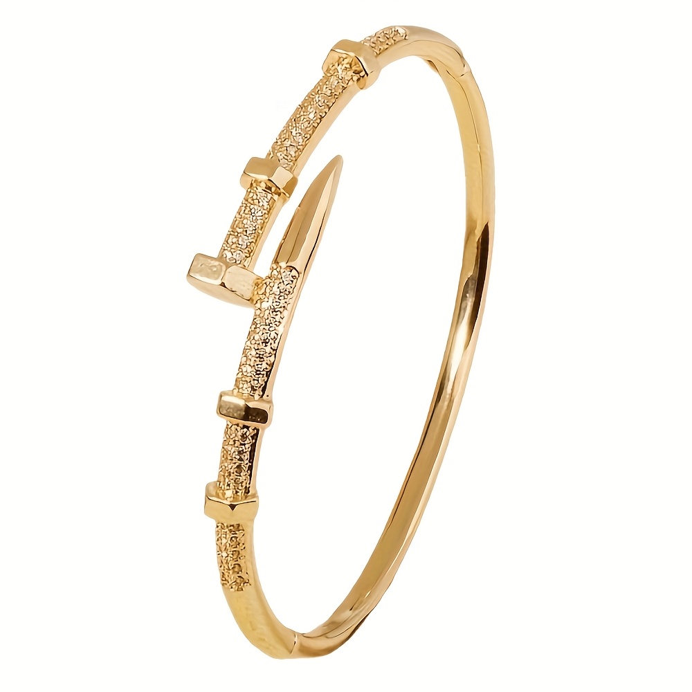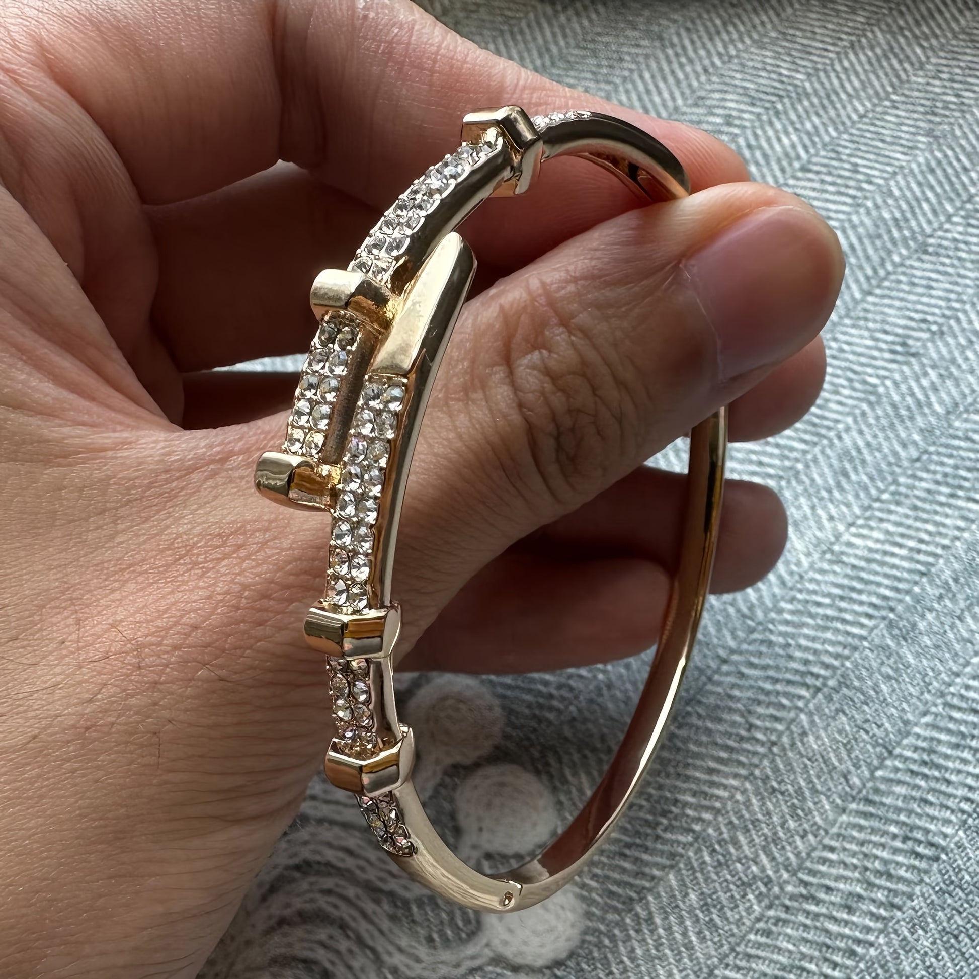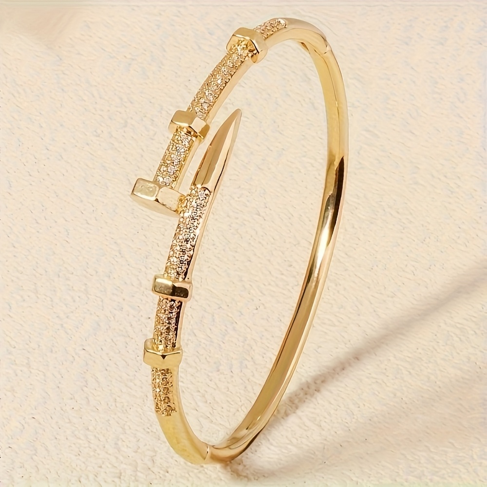 Goldtone Bohemian Snake Chain Bracelet with Sparkling Accents - 1pc Adjustable Open Bangle for Women, Everyday & Party Jewelry, Perfect Holiday Wedding Gift for Friends, Sophisticated Jewelry, Polished Finish