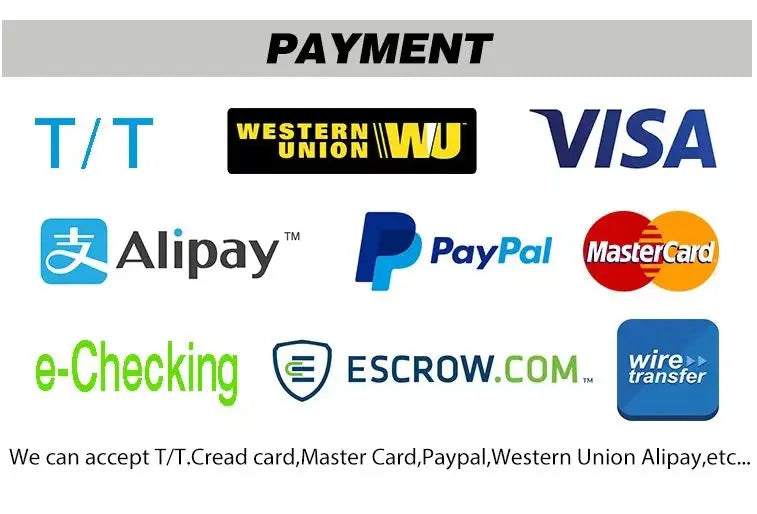A: You can pay money by Alibaba Trade Assurance, Bank, Western Union, Credit Card, Cash, PayPal, T/T, MoneyGram, Escrow, L/C, D/A, D/P, etc.