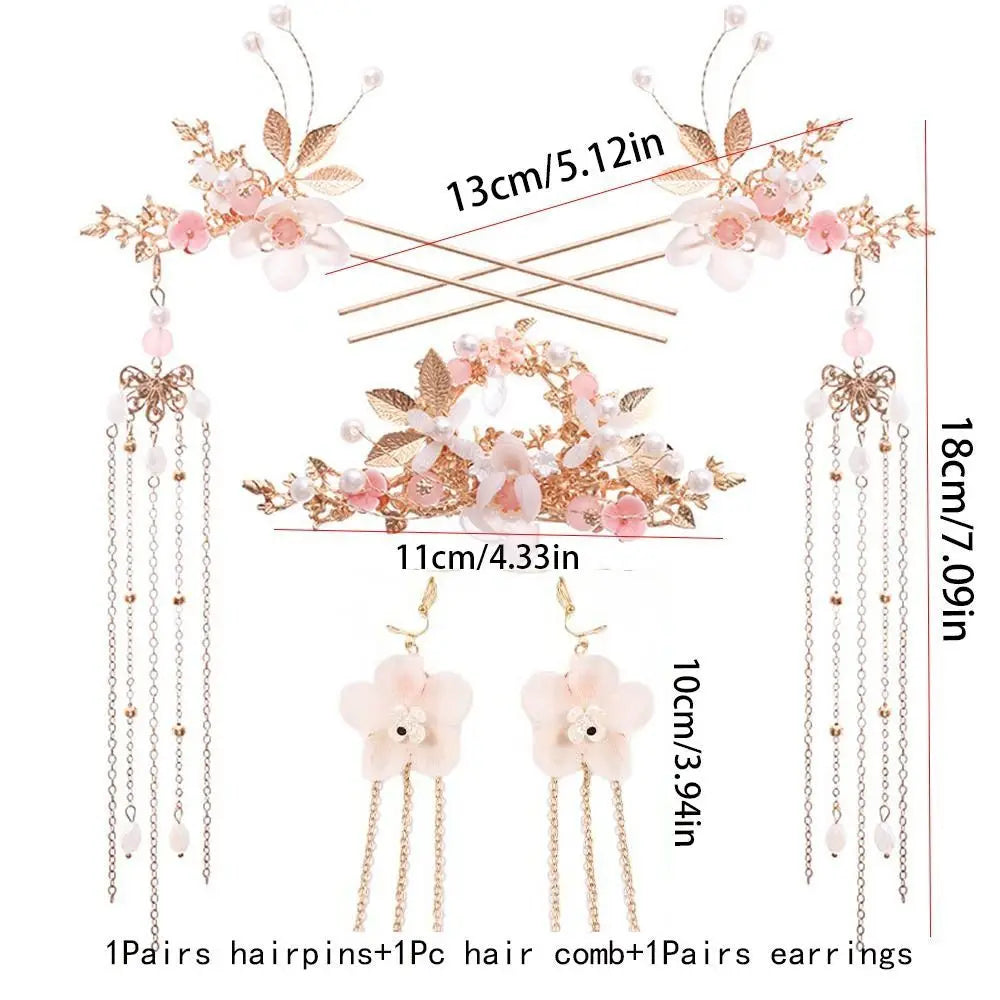 Kẹp Tóc Hoa Dài & Trâm Cài Pha Lê Trung Hoa