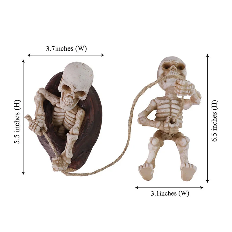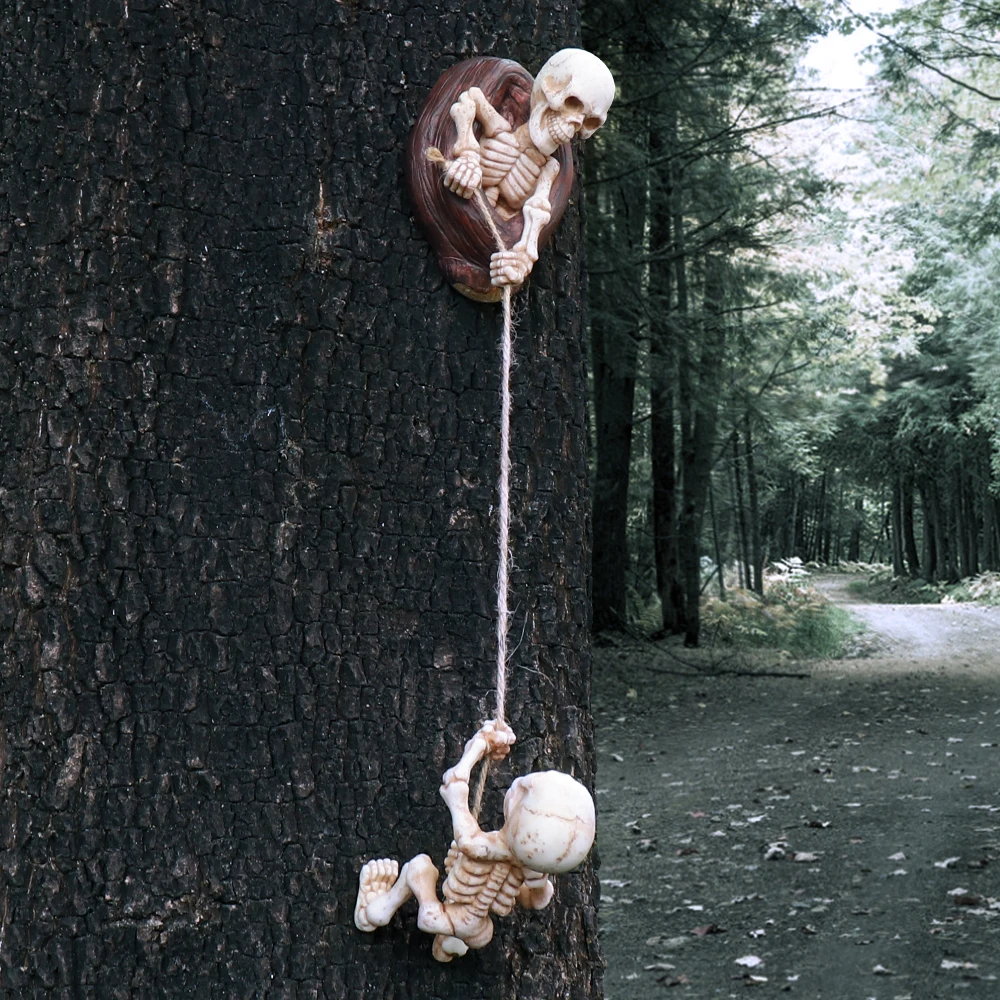 Halloween Themed Resin Skeleton Decor Outdoor Tree & Display Figurine Set Rope-Connected Art Mold for Crafting & Gifts