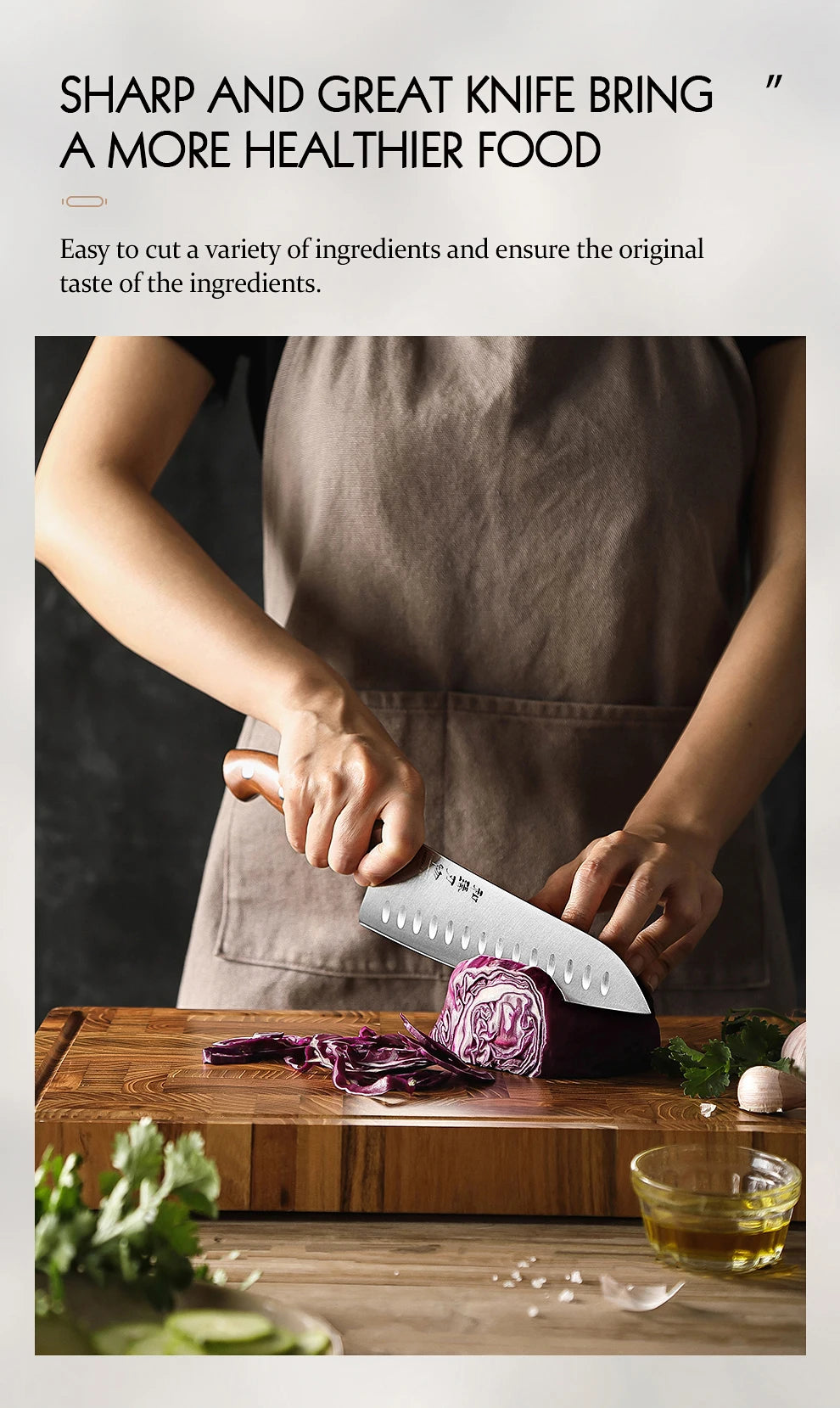 Bộ Dao Bếp HEZHEN 1/5PC - Lưỡi Thép, Cán Gỗ Đỏ
