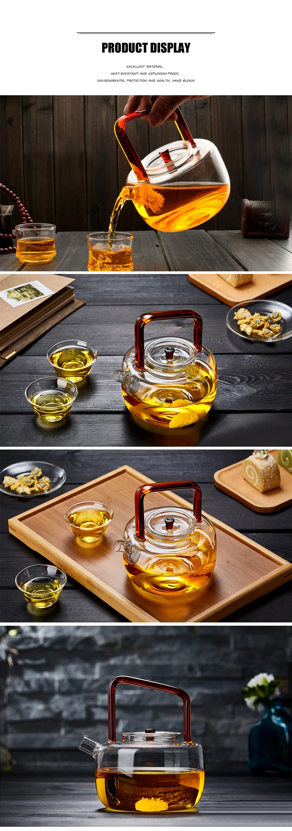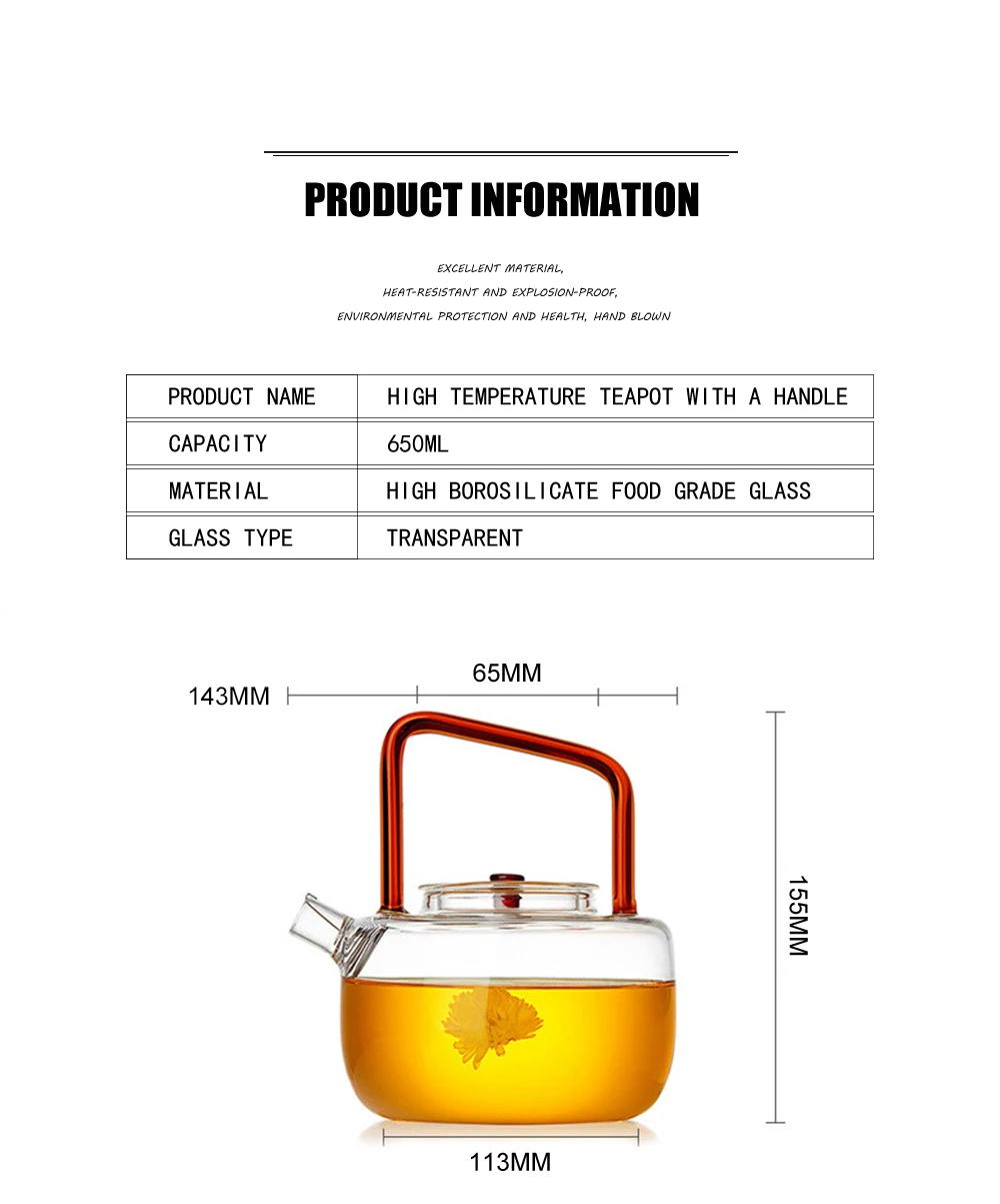 Ấm Pha Trà Thủy Tinh 650ml Tay Cầm Đỏ Chịu Nhiệt