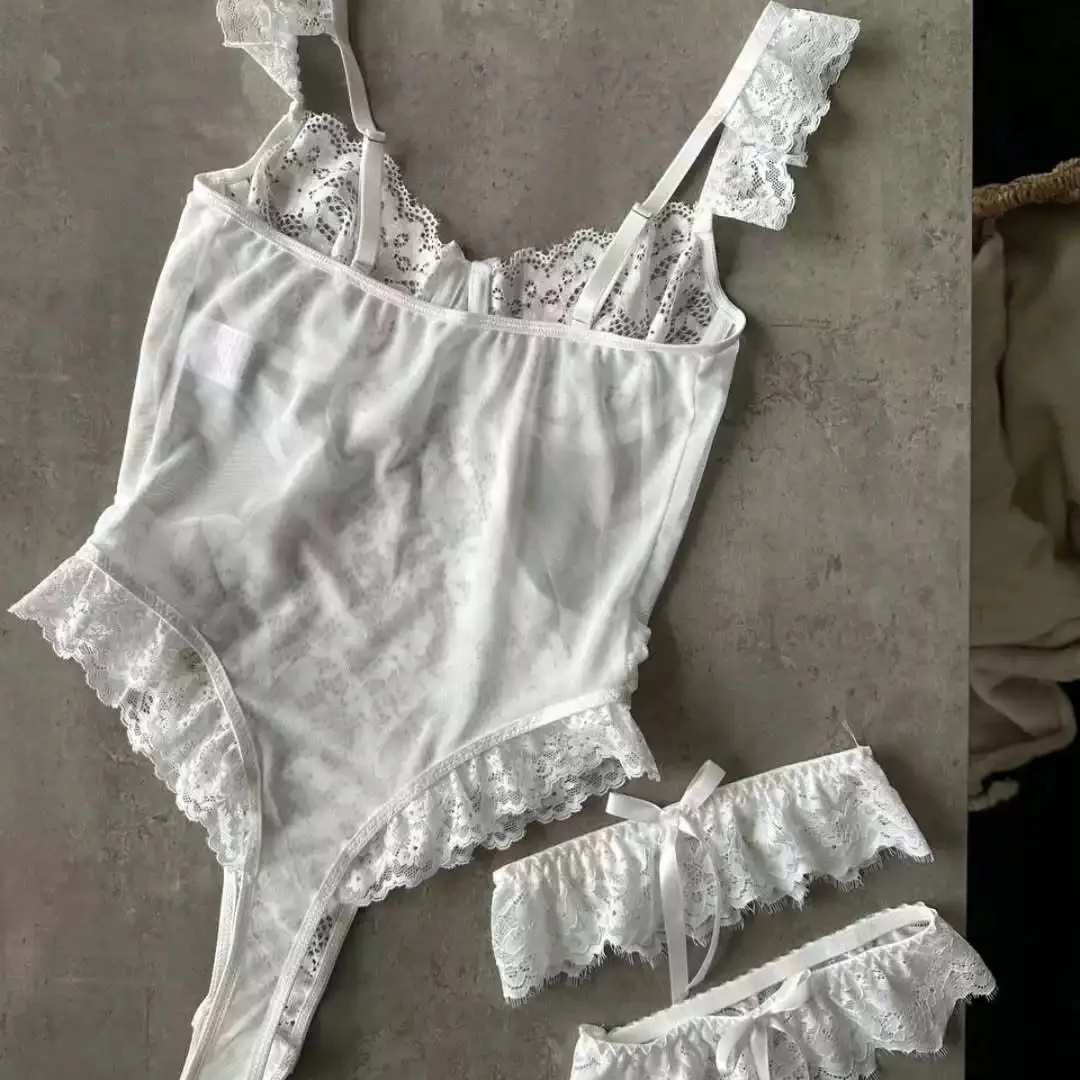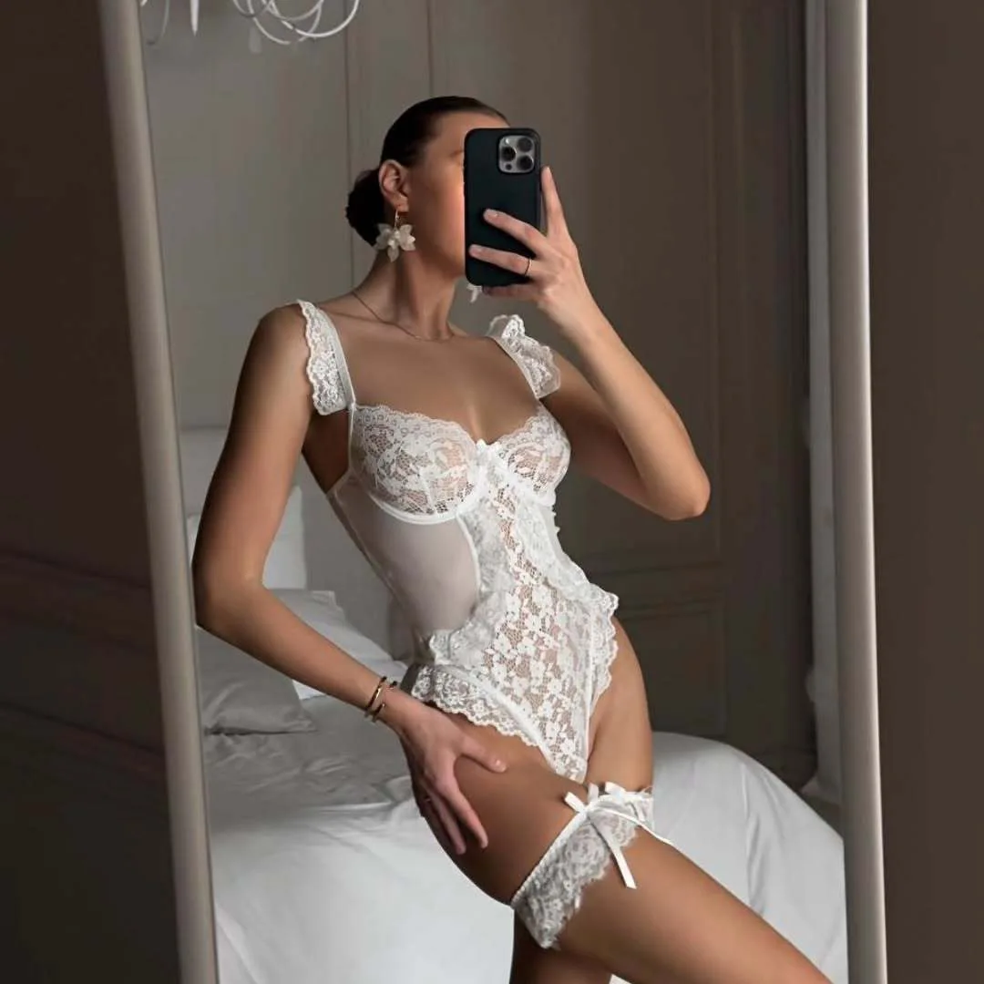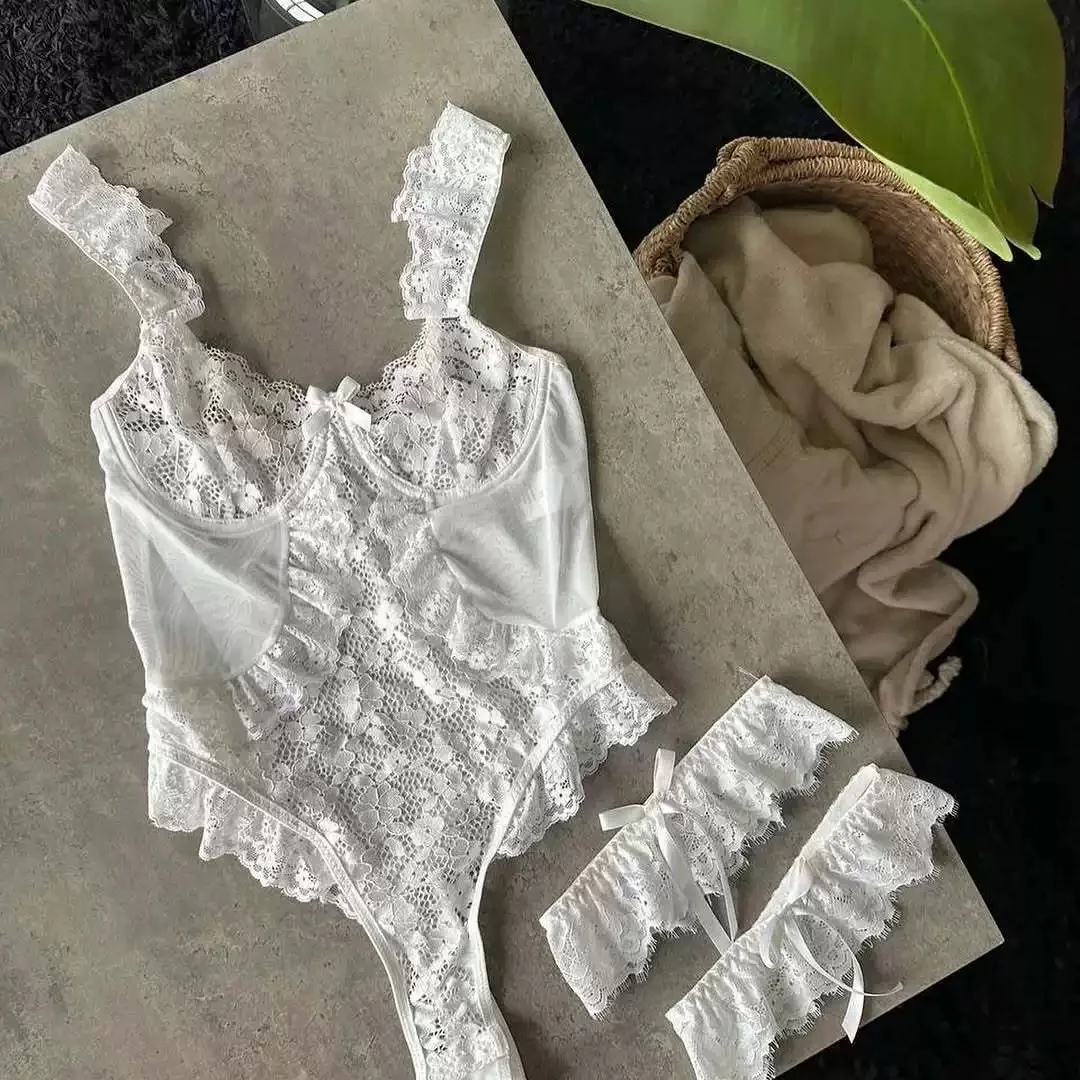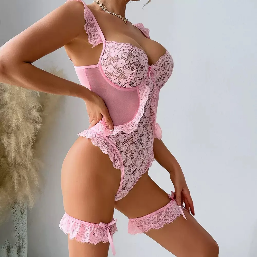 Teddy Đỏ Quyến Rũ - Bodysuit Lưới & Đai Nịt Ren