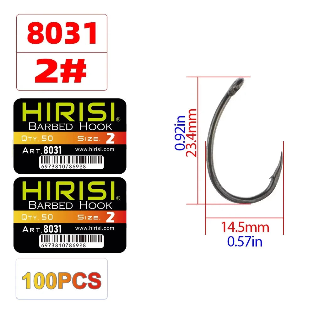 100 pcs PTFE Coated High Carbon Stainless Steel Barbed Fish Hook With Eye Fishing Accessories 8031